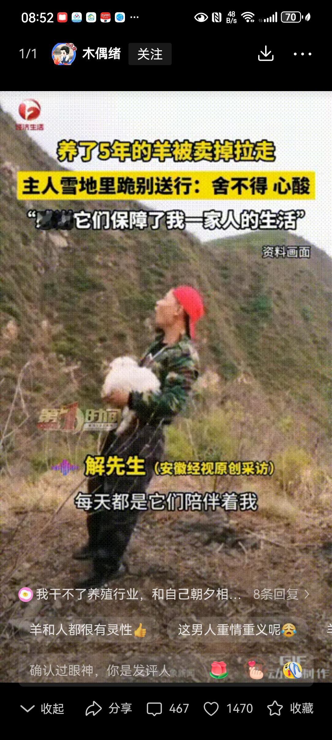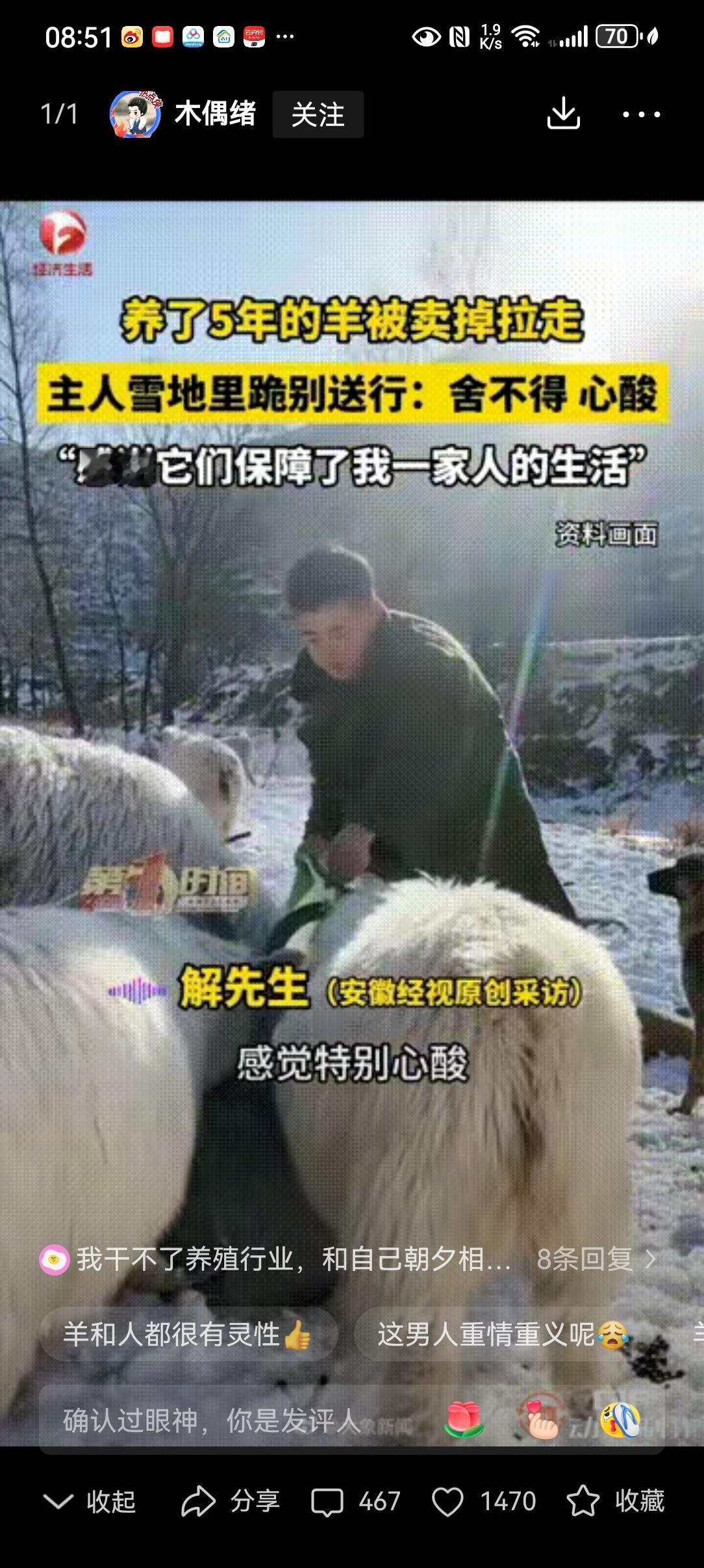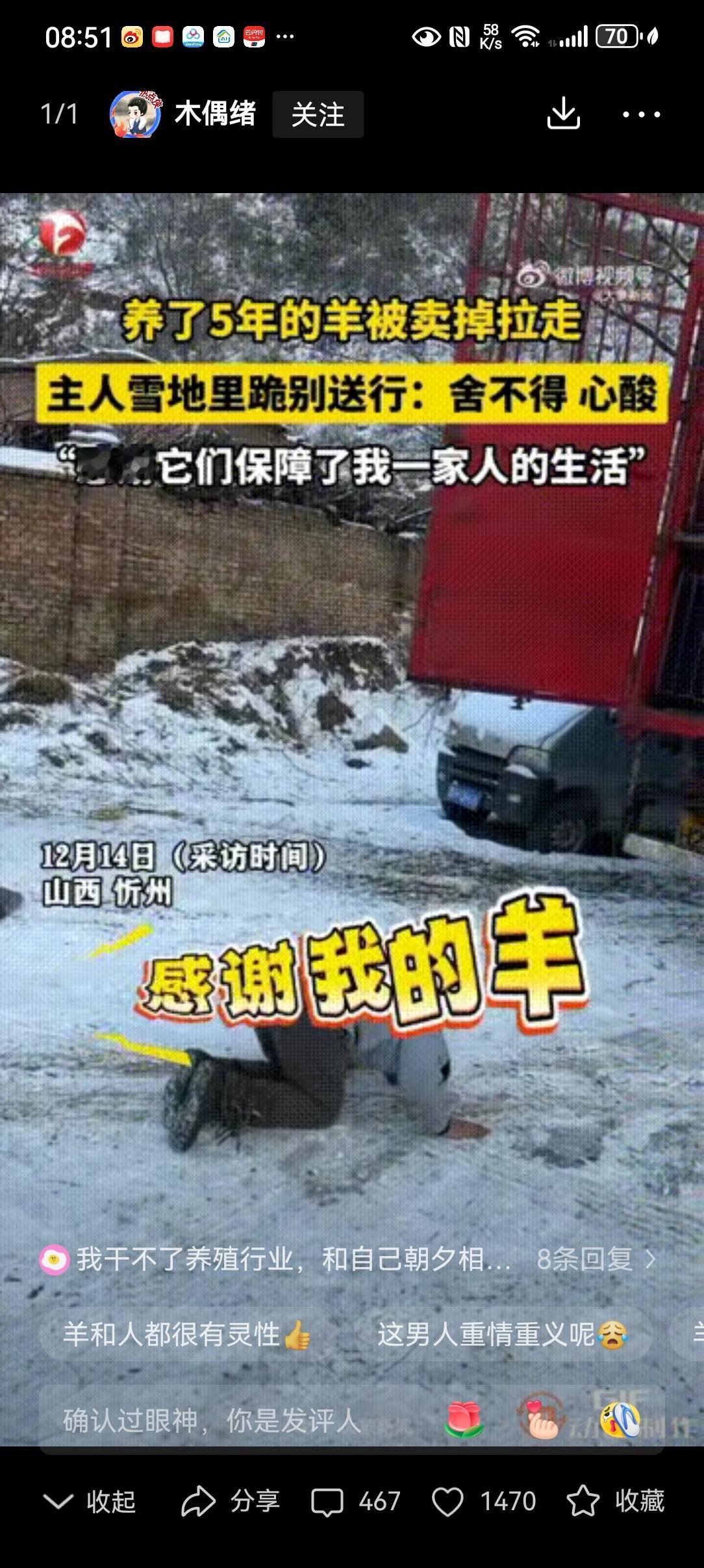 山西忻州一名男子将养了5年的羊卖掉,当所有羊都被装上车即将被带走时,男子再也忍不住了,直接跪在雪地上,双手合十,向所有羊送行告别。 男子守在山里五年,日子清苦得只剩风声与羊群。羊是他的伴,是漫漫长夜的念想,更是朝夕相处的家人,低头蹭他掌心的温度,都是刻在骨子里的熟稔。 可草场没了,家里等着用钱,不卖羊,日子就撑不下去。他拎着绳子赶羊上车时,手都是抖的,每一步都像踩在心上,疼得发紧。 羊被装上车的那一刻,他再也绷不住,“咚”地跪在雪地里,双手合十对着车厢拜了又拜。雪粒打在脸上,混着眼泪往下淌,他没哭出声,却比哭嚎更让人揪心。 车上的羊安安静静,一双双眼睛盯着他,不吵不闹,像是懂了这是最后一面,眼里满是不舍,连咩叫都带着委屈。 谁愿意卖了自己的家人?他比谁都清楚,这些羊走了,就是砧板上的命,可生活压得人喘不过气,取舍之间,全是无奈。 万物皆有灵,人心更有温度。他跪的不是羊,是五年的时光,是无能为力的生活,是拼尽全力却护不住相伴之人的委屈。 生活从不是随心所欲,更多的是身不由己。这一跪,跪出了普通人的难处,也跪出了最真的善良,看完只剩心疼。