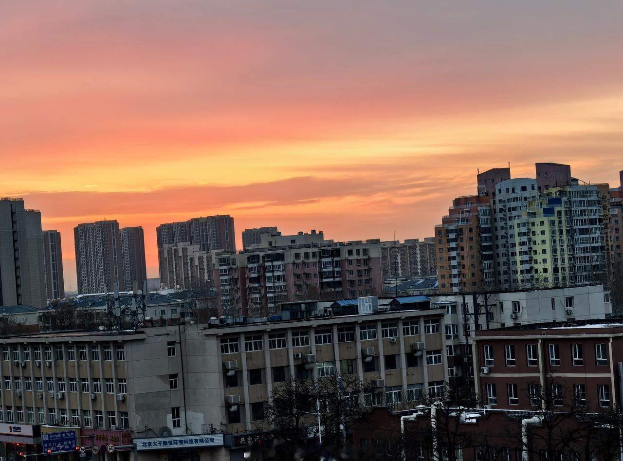北京大兴消防[超话] 【北京现绝美橘色朝霞 见者好运】今天清晨,北京橘色朝霞惊艳亮相。@气象北京
