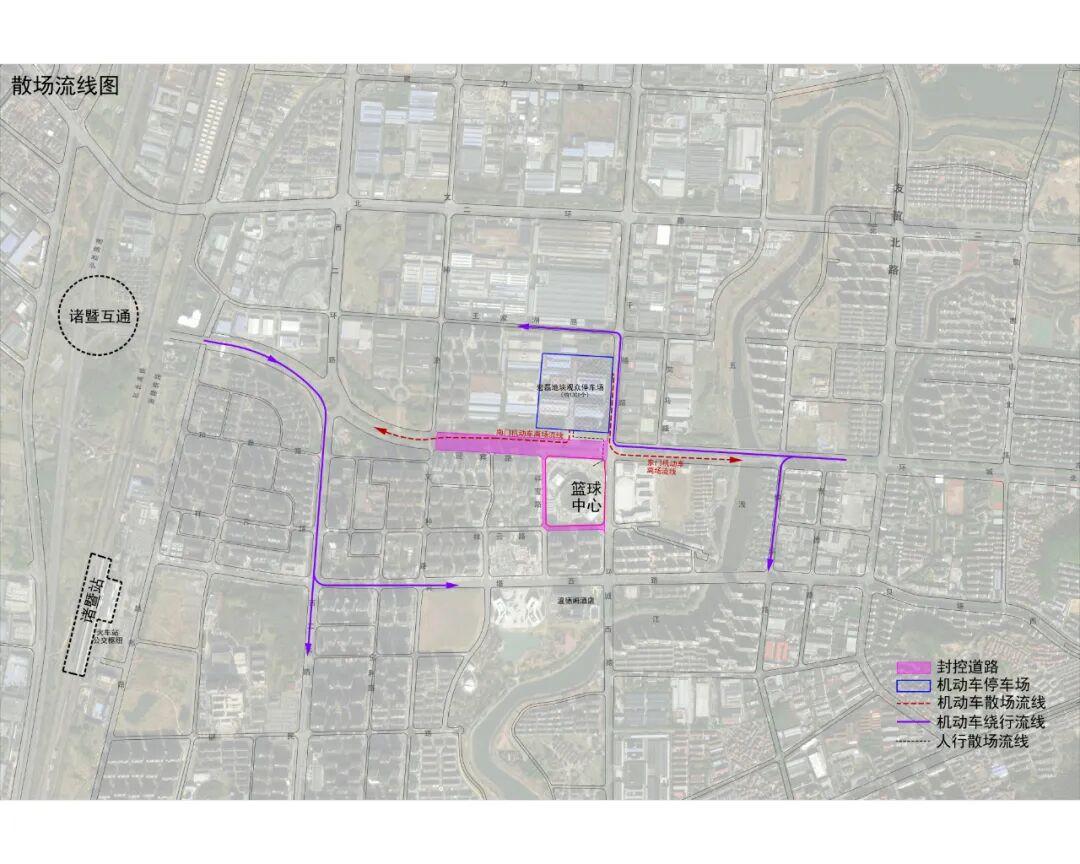 因诸暨市篮球中心安保工作需要,诸暨市公安局交通管理大队决定于2025年12月20日至21日对诸暨市篮球中心周边道路实施分时、分段交通管制,请过往车辆提前选择道路绕行。