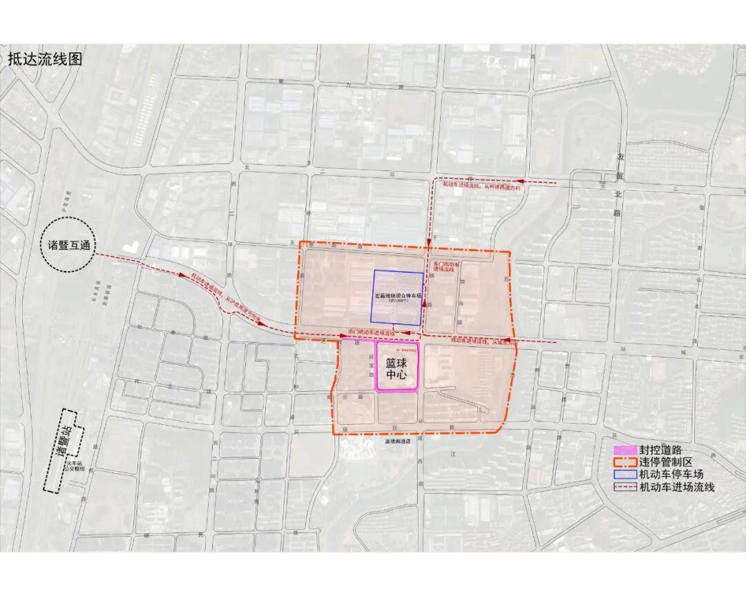 根据活动安保及进出场人员、车辆集散需要,篮球中心举办活动期间,将对相关道路分时、分段实施交通管制,具体如下:(一)进场阶段交通管制