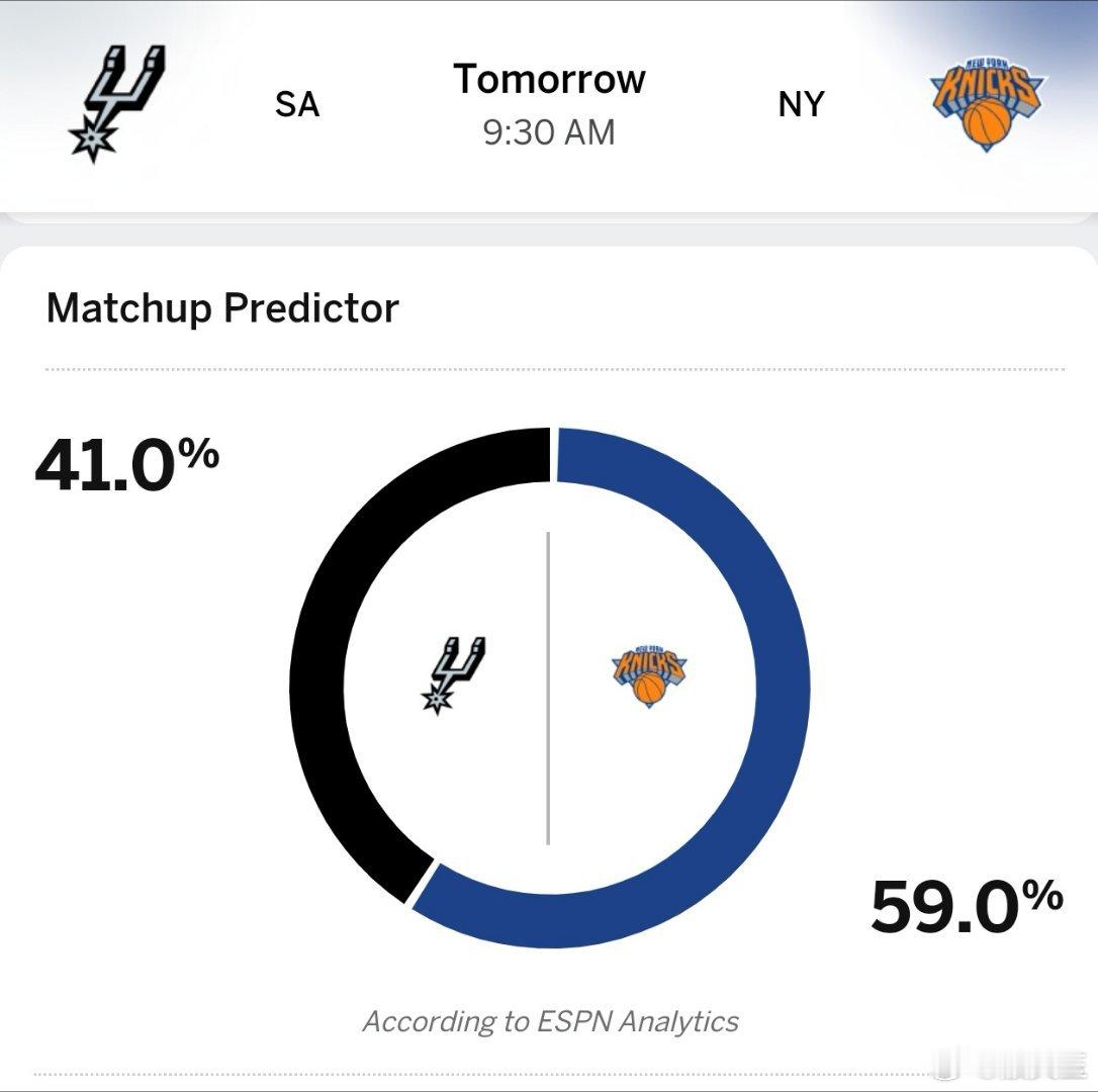 明天上午9:30,在五星体育电视直播NBA杯决赛。官方公布的NBA杯MVP榜单中,布伦森和唐斯分列第一和第二。在最近两次和尼克斯的交手中,文班亚马分别砍下了40和42分。BPI指数显示,这是一场四六开的比赛。