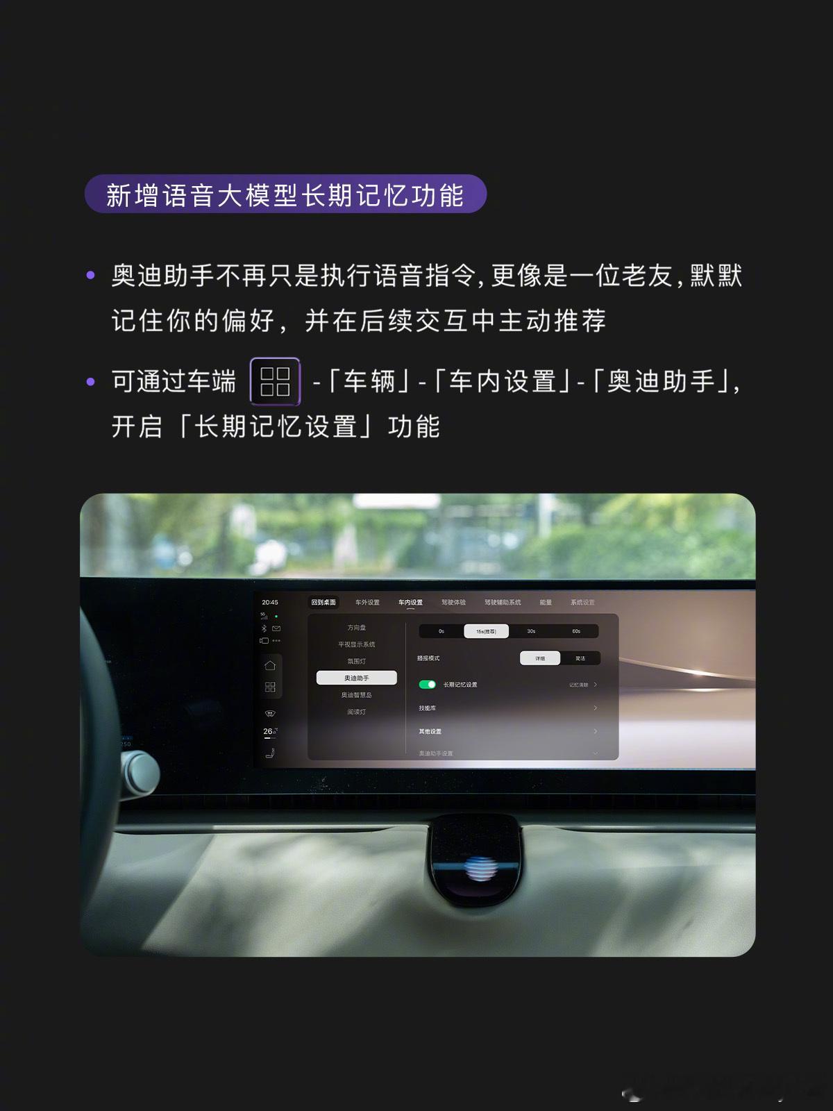 我的车今天好像有情绪了 我就说奥迪E5中间这个触控板肯定是还有功能没弄出来,你看这不就更新了。奥迪 E5 Sportback 迎来首次 OTA 升级,推送 AUDI OS 1.1.0 系统。升级聚焦奥迪助手、视觉动效等四大核心领域,新增 10 余项功能、优化 200 余项体验,奥迪助手的长期记忆和动画功能让交互更具情感。后续还将迭代辅助驾驶等功能,上汽奥迪也将完善全周期服务。大v聊车