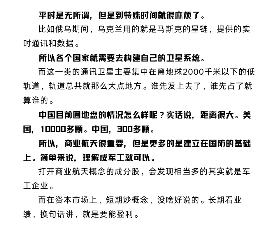 所以,商业航天很值得期待,这是国家的战略。但还没有到价值投资的地步。短线炒炒也许可以。
