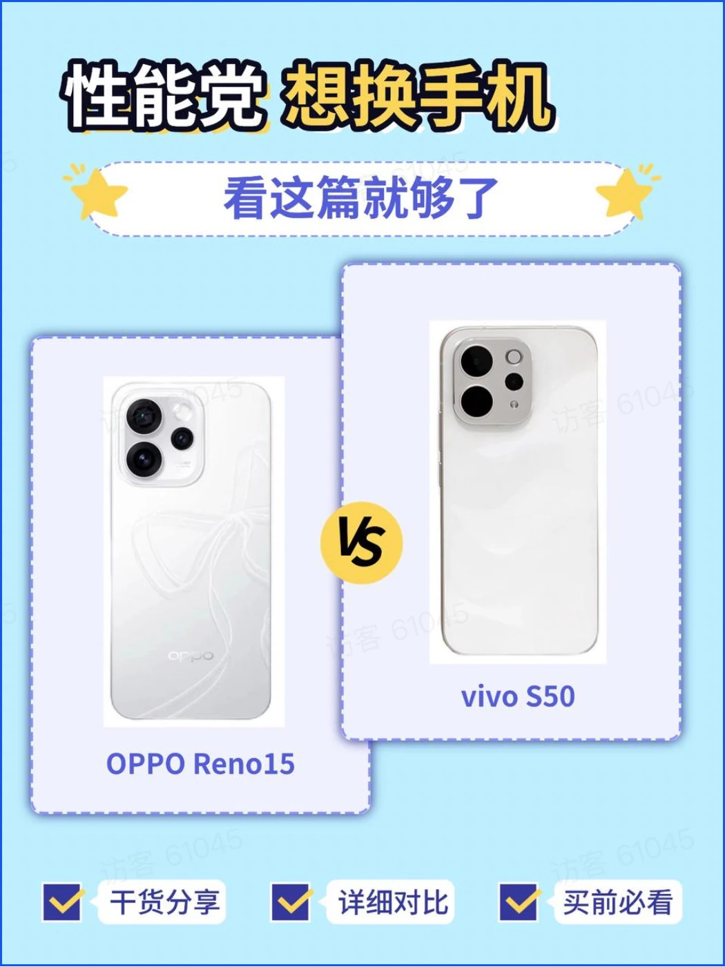马上过年了,大家是不是想想换个新手机,纠结配置的宝子有福了,今天我给大家找了目前市面上比较火的两款手机,vivo S50和OPPO Reno15,整理了一份超详细的购机攻略,保证大家不踩坑!