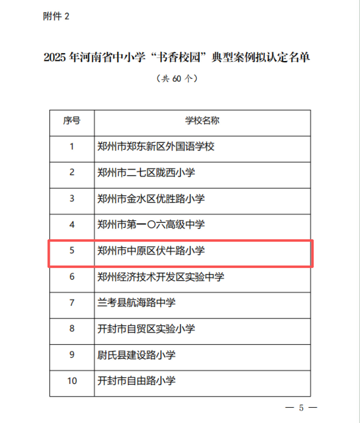 近日,河南省教育厅公示了2025年河南省中小学“书香校园、书香班级”典型案例评选结果,郑州市中原区伏牛路小学凭借深厚的书香底蕴、完善的阅读体系和丰硕的育人成果,成功获评省级“书香校园”典型案例!