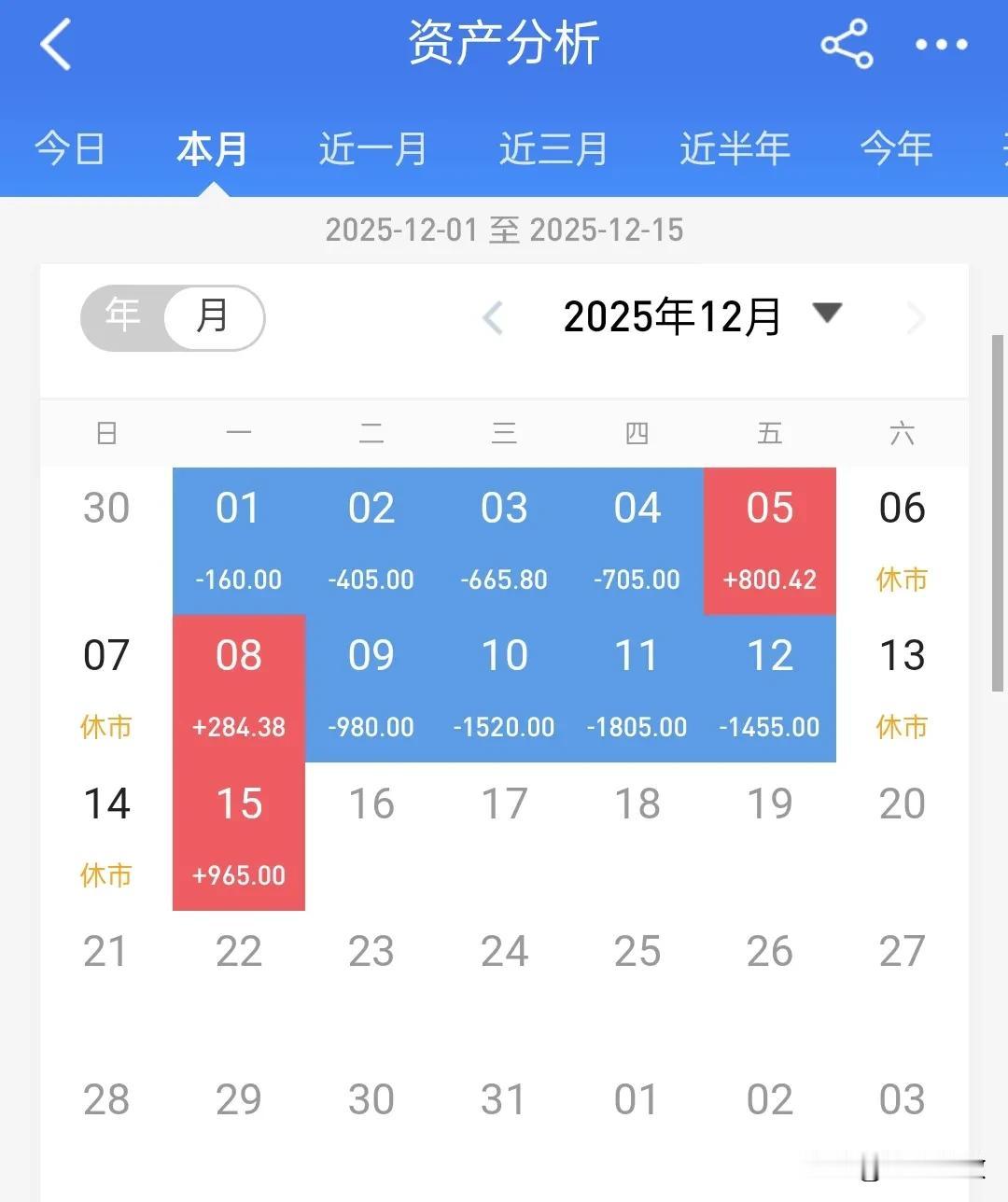 又亏,这个月太惨了,有没有老股民告诉我熊市是咋样的?再这样调整下去,很多人在今年的大牛市中都要亏损了,这一个多月以来频繁的4000下跌,12月才过去一半,印象中就有五六次了,不敢想象,到月底的时候是怎样的景象,但是调整归调整,行情依旧在,四千点肯定还是会再上的,钱也还是有机会再赚的,加水!