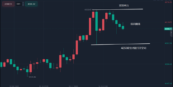 当前盘来看,黄金在4350形成了上方的双顶,在多头趋势下不破4350就不要过分看涨,很可能在此压制下看高位震荡表现。那么,今天可以继续做高空低多的交易。从技术面来看,日线和4小时级别可能进入调整周期,特别是4小时级别的变化,目前连阴下又在收口,继续发展的话,很有可能会在本周下跌一波至布林下轨之下4200附近,那么,链接到日线级别刚好就可以去布林中轨的强弱支撑点,所以,中长线黄金虽然明确看涨,但短期内的调整空间也需要关注。对于日内行情而言,亚欧盘看震荡,可以在关键点操作高空低多,大概率区间在4330/4250,可以选择在此区间交易,而美盘有非农数据公布,数据利多,再看4350,4385得失,数据利空,这波则要破位4250支撑点,再下看4200低点。