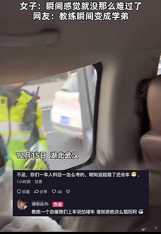 笑发财了!女子科目三挂了难过的不行,没想到教练超载被吊销驾照,不难过了! 女子考科三挂了,正坐教练车emo了,结果教练怕堵车,硬把11个学员全塞上车,半路被交警抓了,驾照直接就没了。 女子说瞬间就不难过了,合着教练比她还先体验,重新考驾照的滋味,教练秒变学弟。 不得不说,这教练也太离谱了,天天教学员们别违规,结果自己超载带头犯错,交通规则真不是闹着玩的,谁侥幸谁栽跟头! 驾校考科三 科目三考驾照 科三 迟来的科三 丫头的科目三 女司机科三