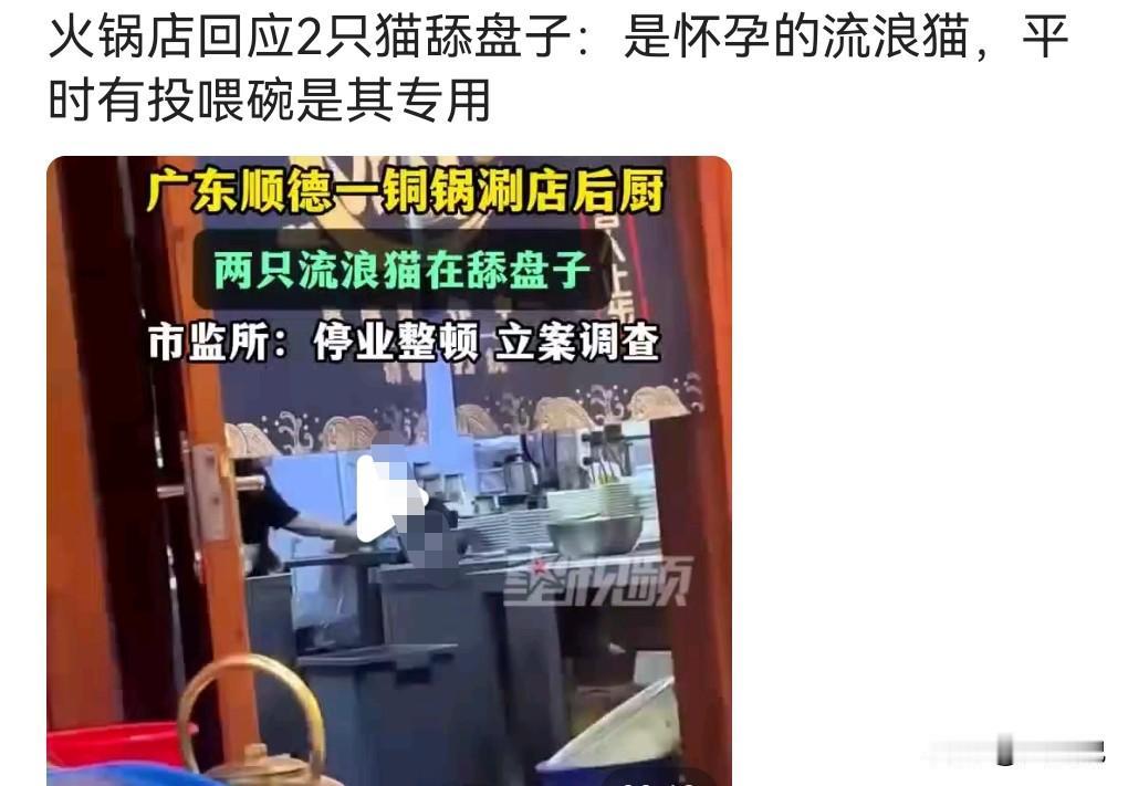 这确实让人膈应啊,有两只猫竟然在饭店的后厨舔盘子。 不管什么情况,这样的情况总是难免会让顾客担心的。 店家称是两只流浪猫,平时有专用的碗。 不管是不是有专用的碗,这样的行为被顾客拍下了,那肯定是要受到处理的。 市监所回应称停业整顿,立案调查。 这也敲响了警钟。 作为饭店还是要有一点觉悟的。要知道什么事情能做,什么事情不能做,让猫在后厨舔盘子,这还了得。