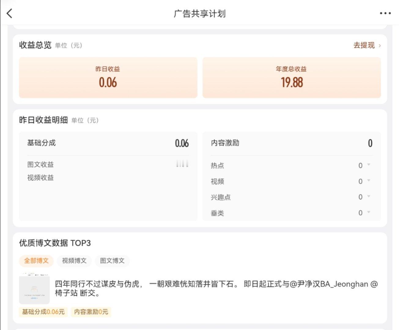 这为啥尼 我昨天转发了去年的一条微博然后这条还获得收益了