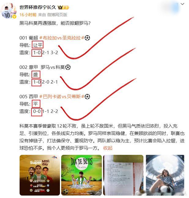 昨晚20杯+比芬大满观,今日一场也能玩成花,还有明日场次!001 英联杯 加的夫城vs切尔西⚽️导航:进球数 半全场 方位温度:🔝👗查看!001 洲际杯 巴黎圣日耳曼vs弗拉门戈⚽️导航:🔝👗温度:🔝👗查看!005 英联杯 布伦特福德vs利兹联⚽️导航:🔝👗温度:🔝👗查看!一步一脚印,山巅终可抵!我曾踏足巅峰,也曾陷入低谷,如今又收获大满贯,收他喵的!不算太过激进,这个月的战绩连我自己都数不清。勇敢的人先拥抱世界。看人之短,无处可交。看人之长,处处皆师。足篮每日免费全时段推荐,精心解析、方向清晰。这样的诚意,还能去哪里找?今天的场次加上明天的方案,都已备妥,大家庭群内及时更新,每天都有,想拿稳的,置顶就对了,等你来!每日足球推荐
