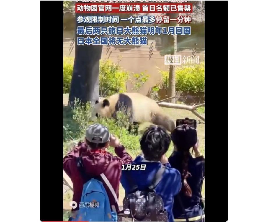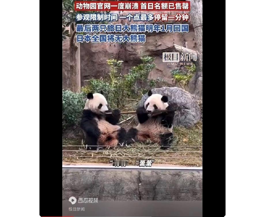 日本人预约参观大熊猫 官网一度崩溃 日本民众对大熊猫的热爱简直爆棚啦!12月15日消息,旅居东京上野动物园的“晓晓”“蕾蕾”2026年1月下旬要回中国,1月25日是最后见面日。从12月23日到那时,得网上预约才能看。 这消息一出,大批民众疯抢门票。12月16日中午,官网直接被挤崩,首日4800张票也瞬间售罄。平常工作日看熊猫都得排40分钟队,周末更要1小时以上。之后不仅有名额限制,1月14日后还得抽签。这不是日本第一次因熊猫回国搞预约抽签制了。据说这俩熊猫为动物园创收300亿日元,部分民众盼着继续租借,不然当地旅游业估计要受影响咯。