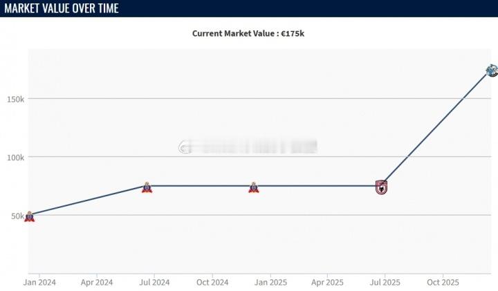 德转更新荷乙联赛球员身价,效力于邓伯什的中国球员王博豪身价上涨10万欧元,达到1