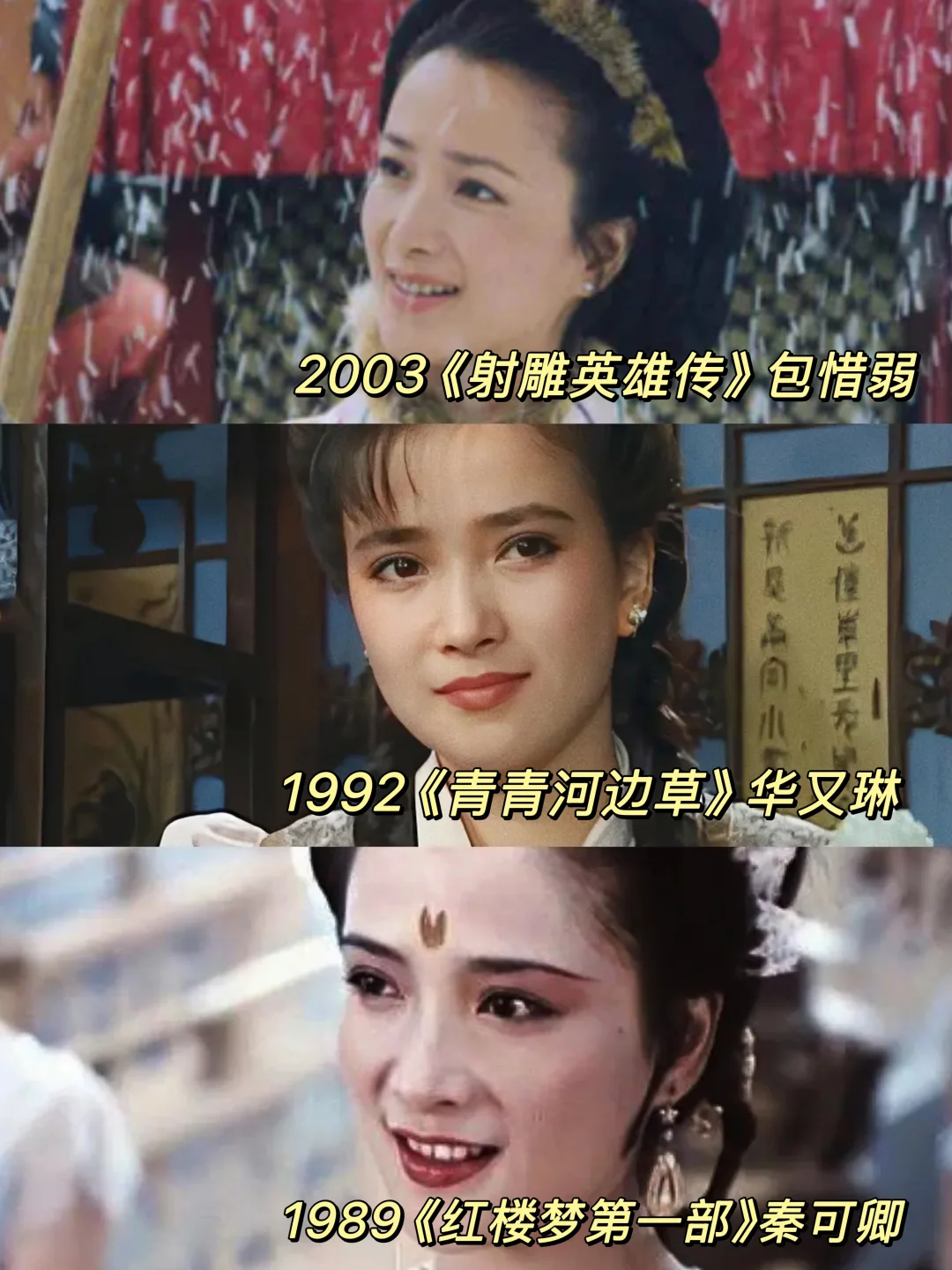 在那个没有滤镜的年代,她的美是清水出芙蓉的干净纯粹,亦是灵动的、古典的,古装和现代装的扮相都很绝美。不论是主角还是配角,何晴饰演的角色都能发光发亮。