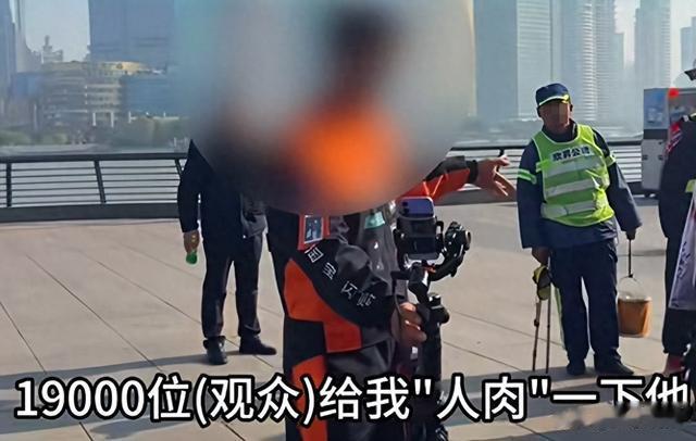 视频显示,近日,该博主在外滩观景平台上直播一系列动作表演,被保安劝阻后把镜头转向保安,并对粉丝说“直播间19000位,给我人肉一下他(保安),把他发到网上”。同时,其还挑衅保安称“来打我呀”。而保安表示“我们正常管理”。之后,警察来到现场。