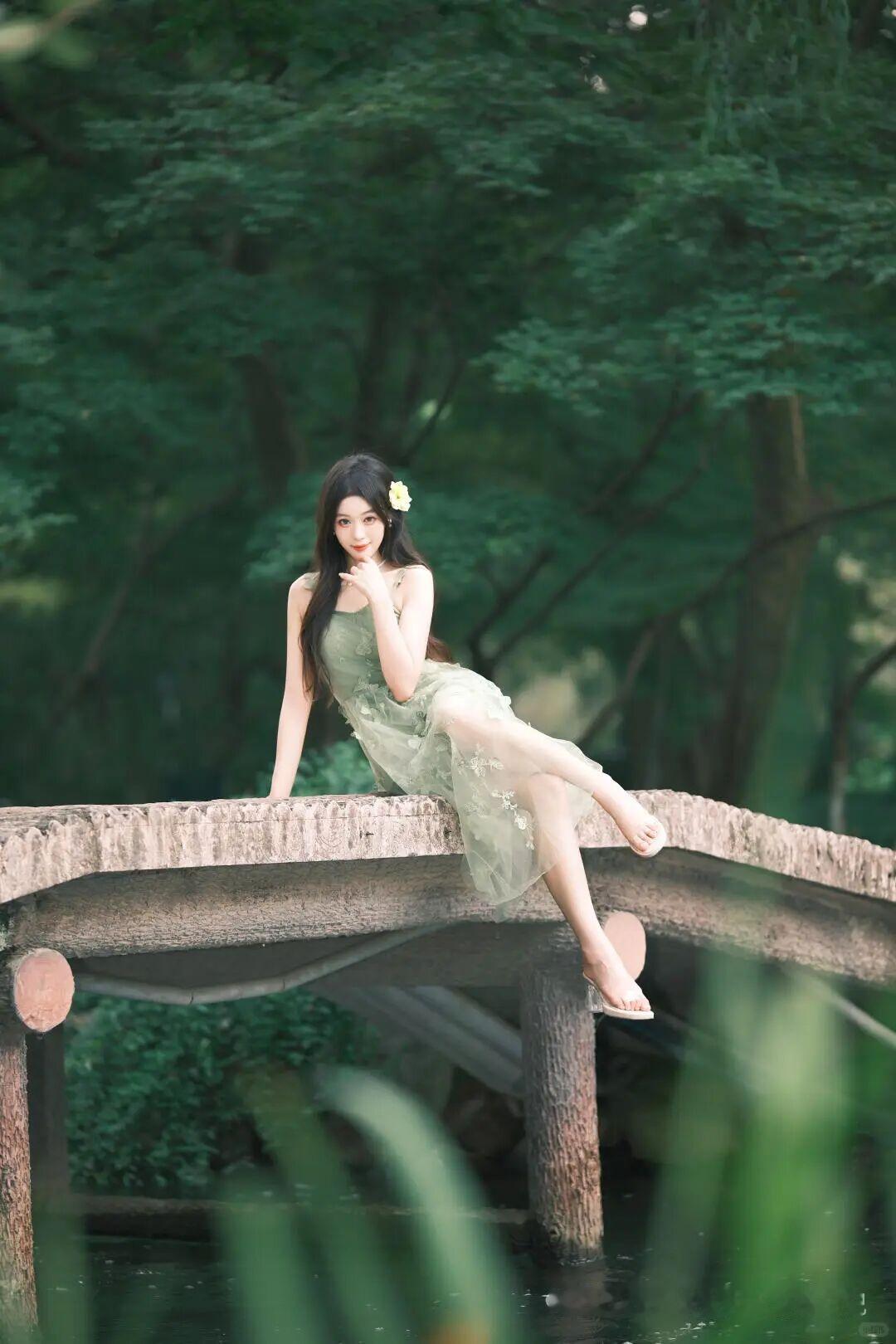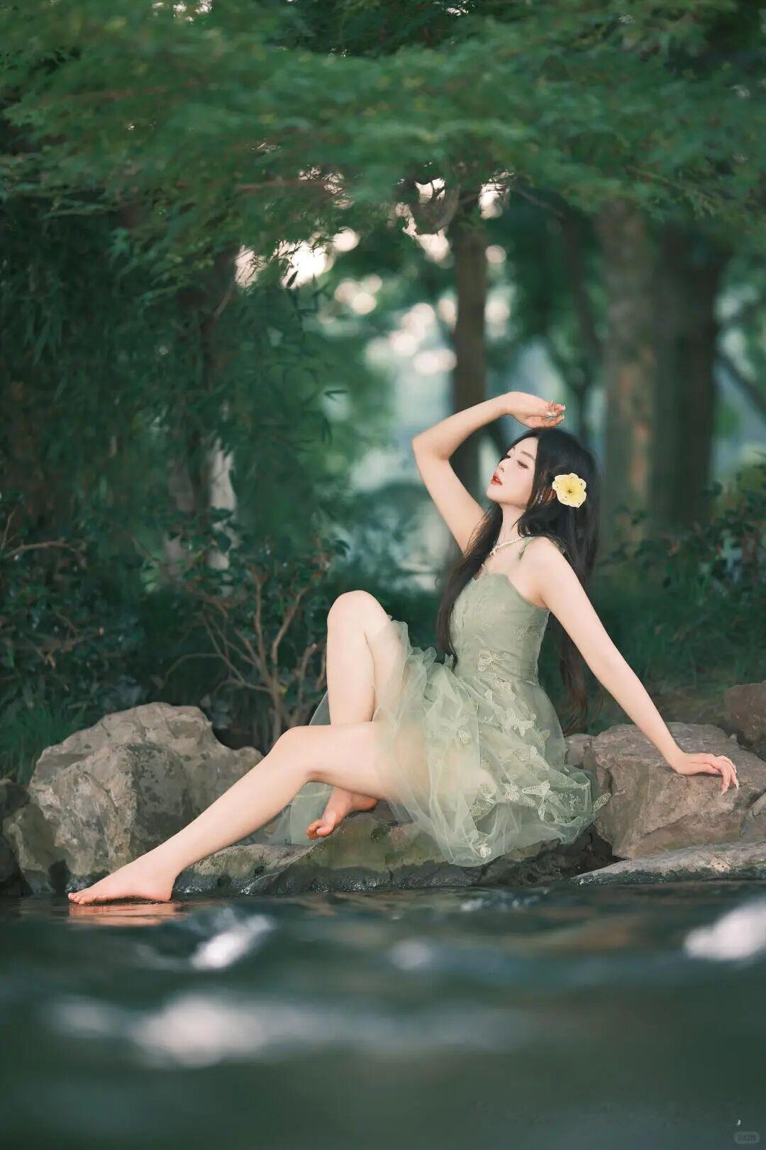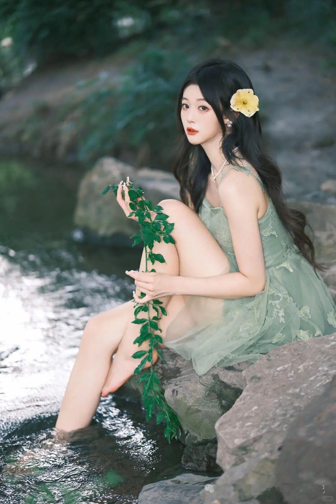 优雅红色绣花旗袍,花间茶香,尽显东方韵味