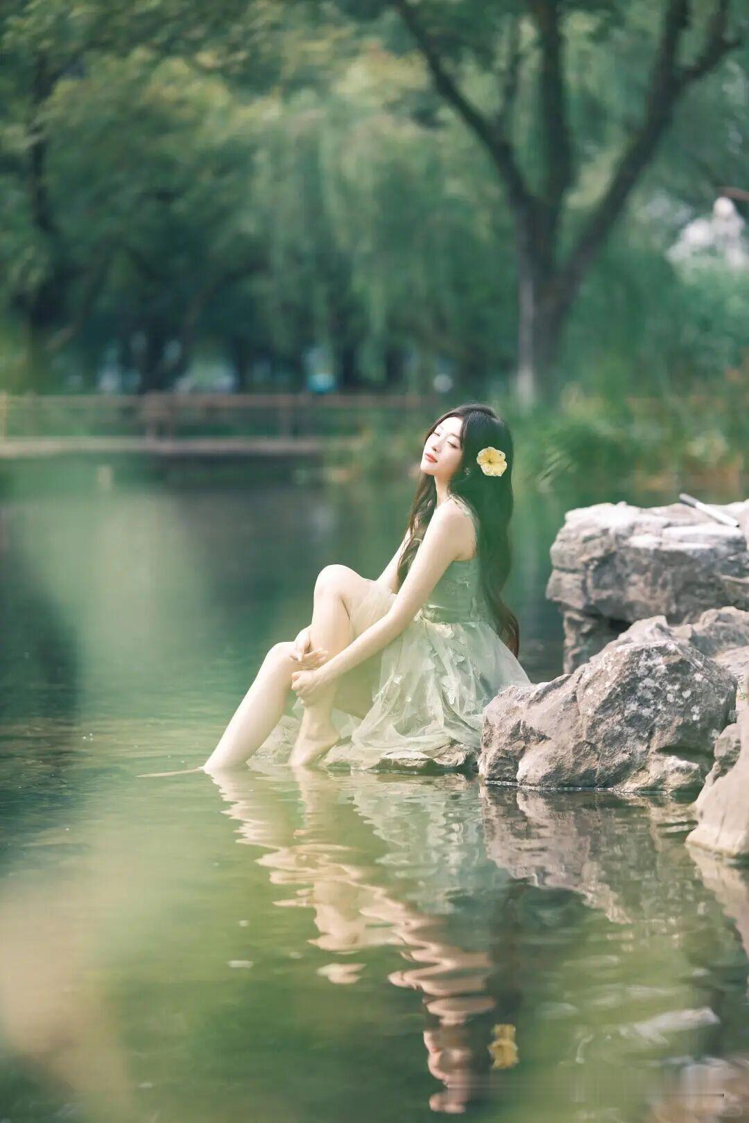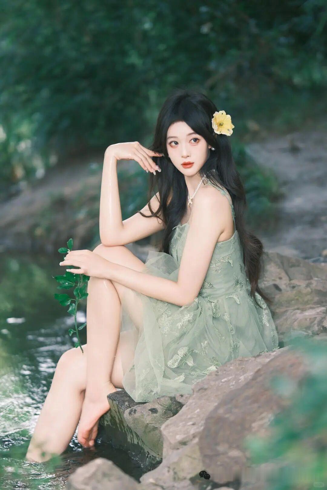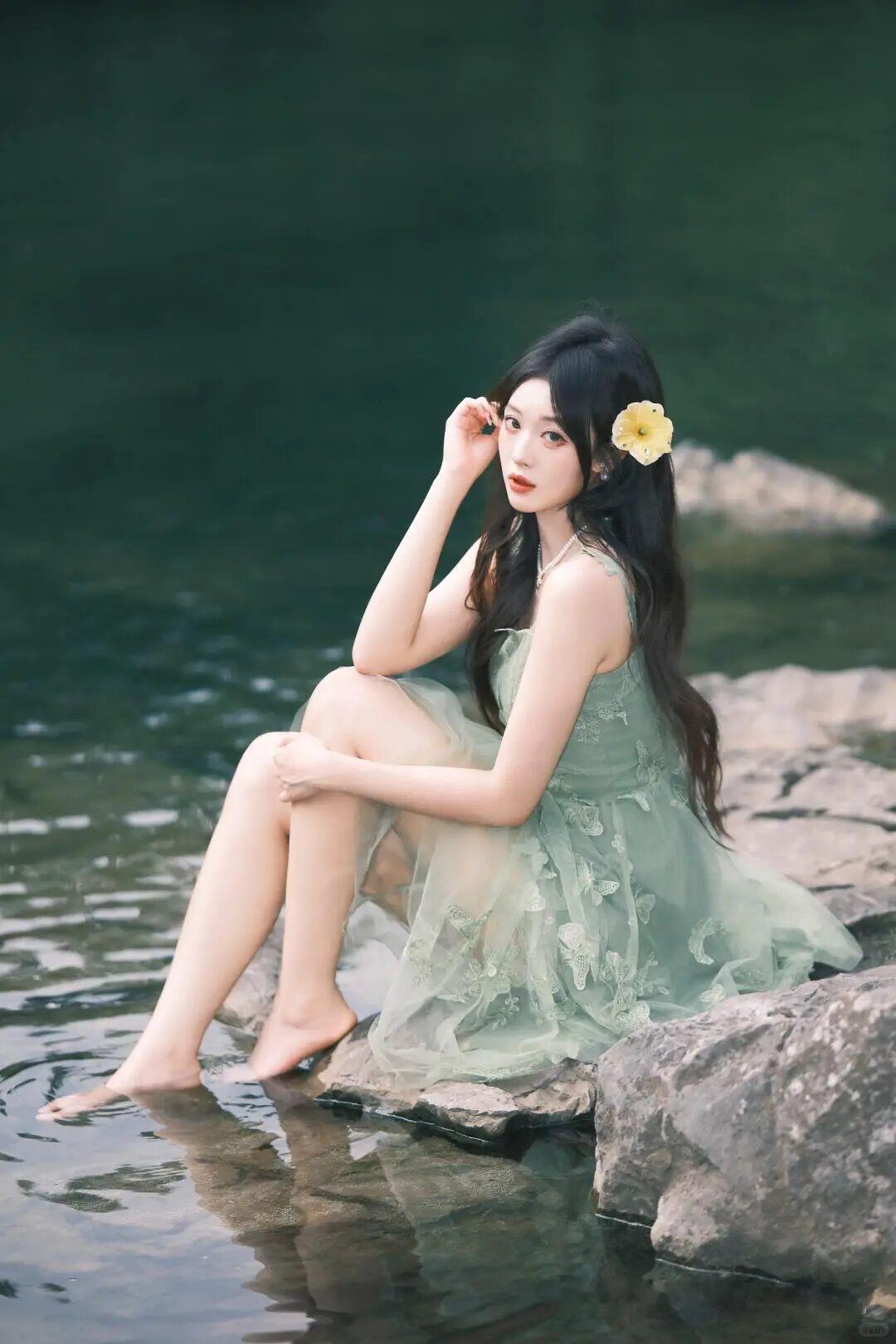 优雅红色绣花旗袍,花间茶香,尽显东方韵味