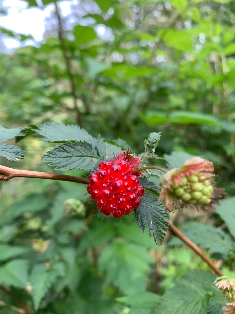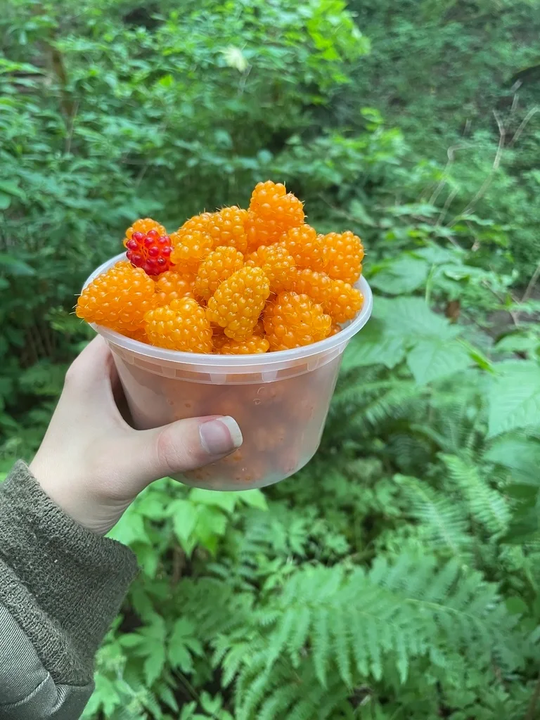 原产于北美洲西海岸,从阿拉斯加中西部到加利福尼亚州。 与悬钩子属的许多其他物种一样,果实通常呈黄橙色或红色,外观类似于树莓。 它不是栽培的,所以必须在当地采集,通常在6月中旬到7月下旬之间。 成熟的水果又嫩又甜,经常用于果酱、果冻和一些烘焙食品中。它经常与烟熏三文鱼一起食用。数千年来,一直是阿拉斯加土著人民饮食的一部分。