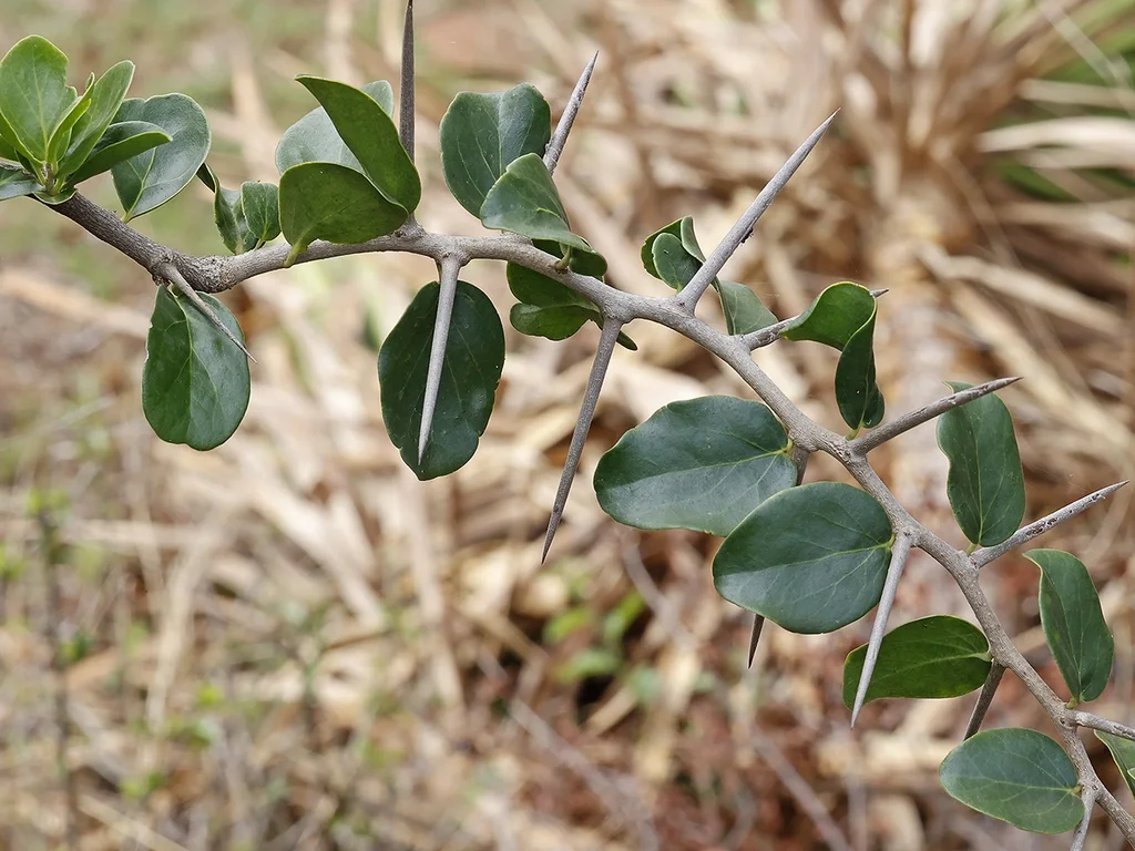 刺醋栗也是K苹果Dovyalis caffra的一个亲戚,K苹果是该属的另一个成员,通常作为屏障植物种植。这两种植物非常相似,但K苹果的果实是黄色的,圆形的,比D.zeyheri的果实略大。