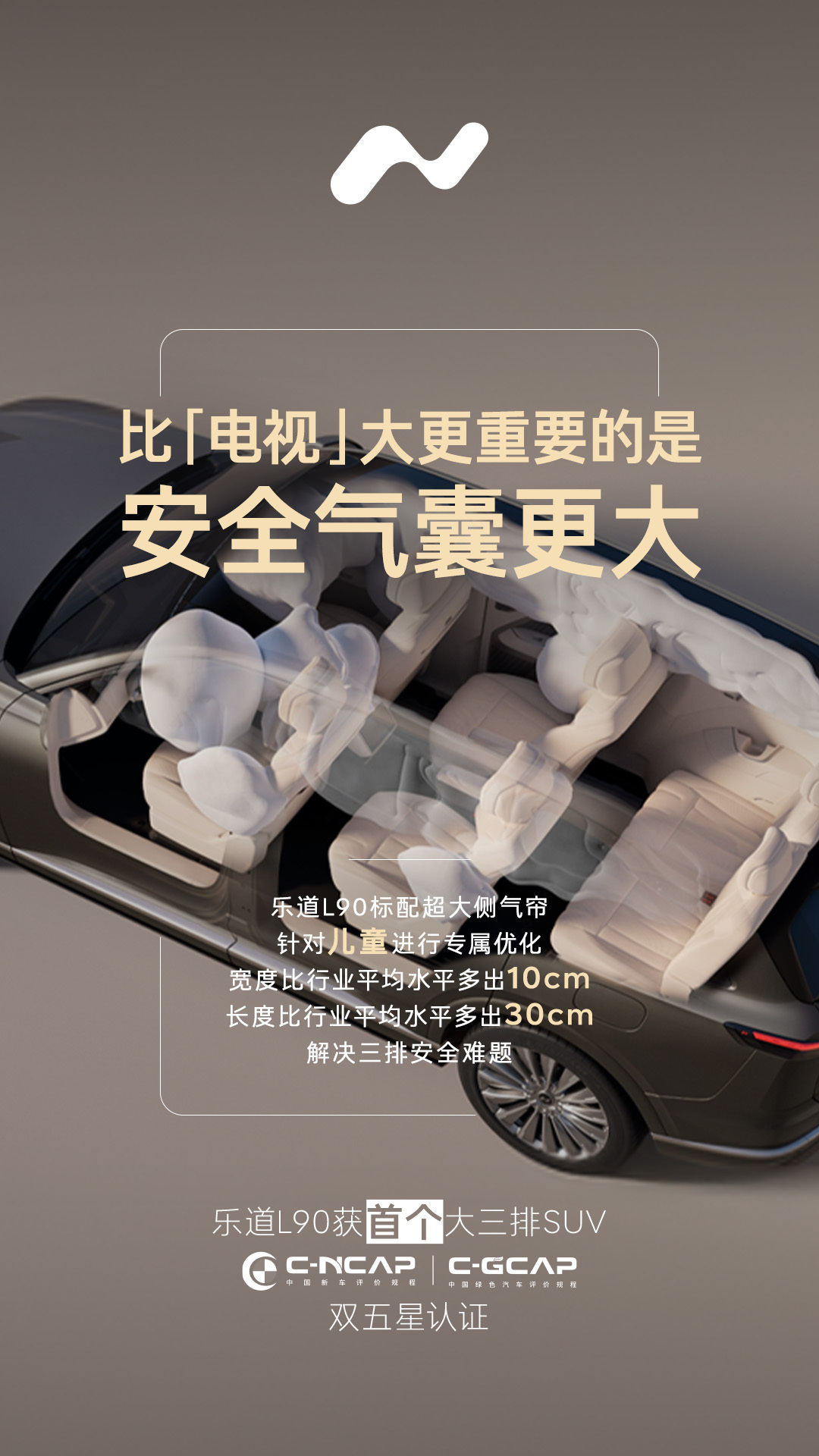 乐道l90 62+项全方位碰撞验证,拿下了五星+奖项。同级别唯一,容量达到56L,长度2920mm。第三排侧气帘展开后延伸至车窗以下宽度达到了同级唯一的511mm。比传统标准多10公分,有效匹配大多数中国儿童颈部长度。安全真的才是最大的豪华。