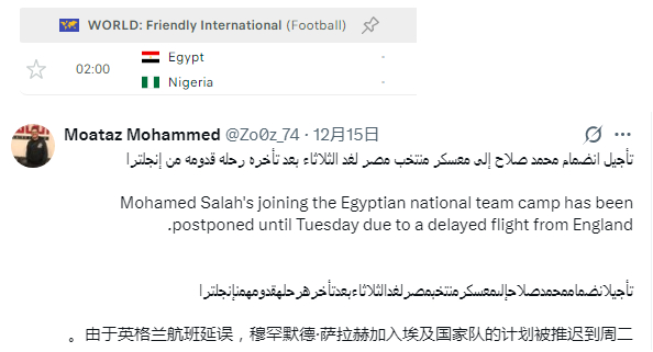 萨拉赫和马尔穆什都没有进入埃及队热身赛大名单,据说是航班延误