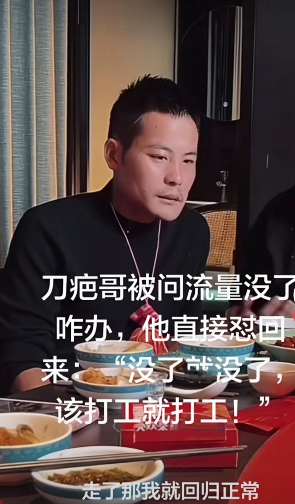 有人调侃问起刀疤哥当流量没有了回归正常了你怎么办呢? 刀疤哥平静地说:“流量没有