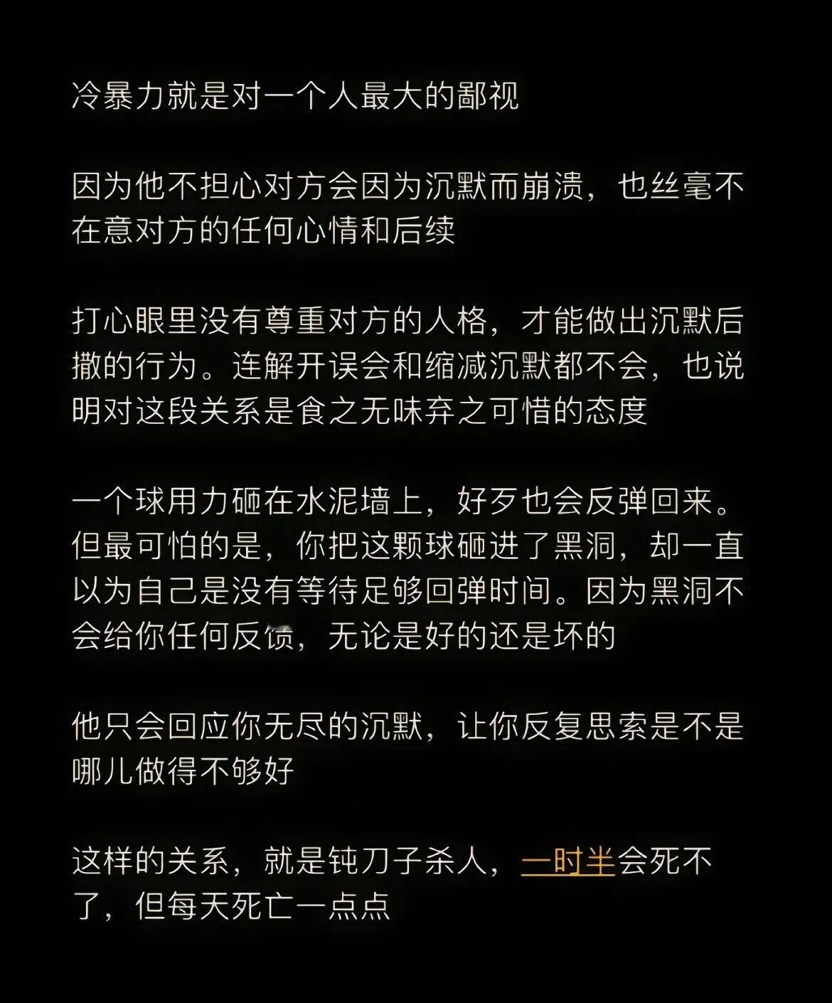 冷暴力本质就是服从性测试。不管是爱情还是友情,只要感到冷暴力,就马上远离这个人,