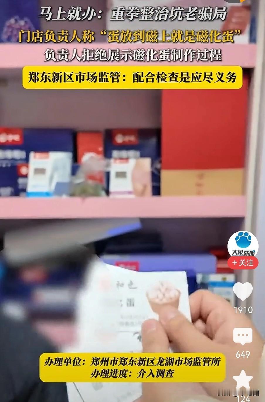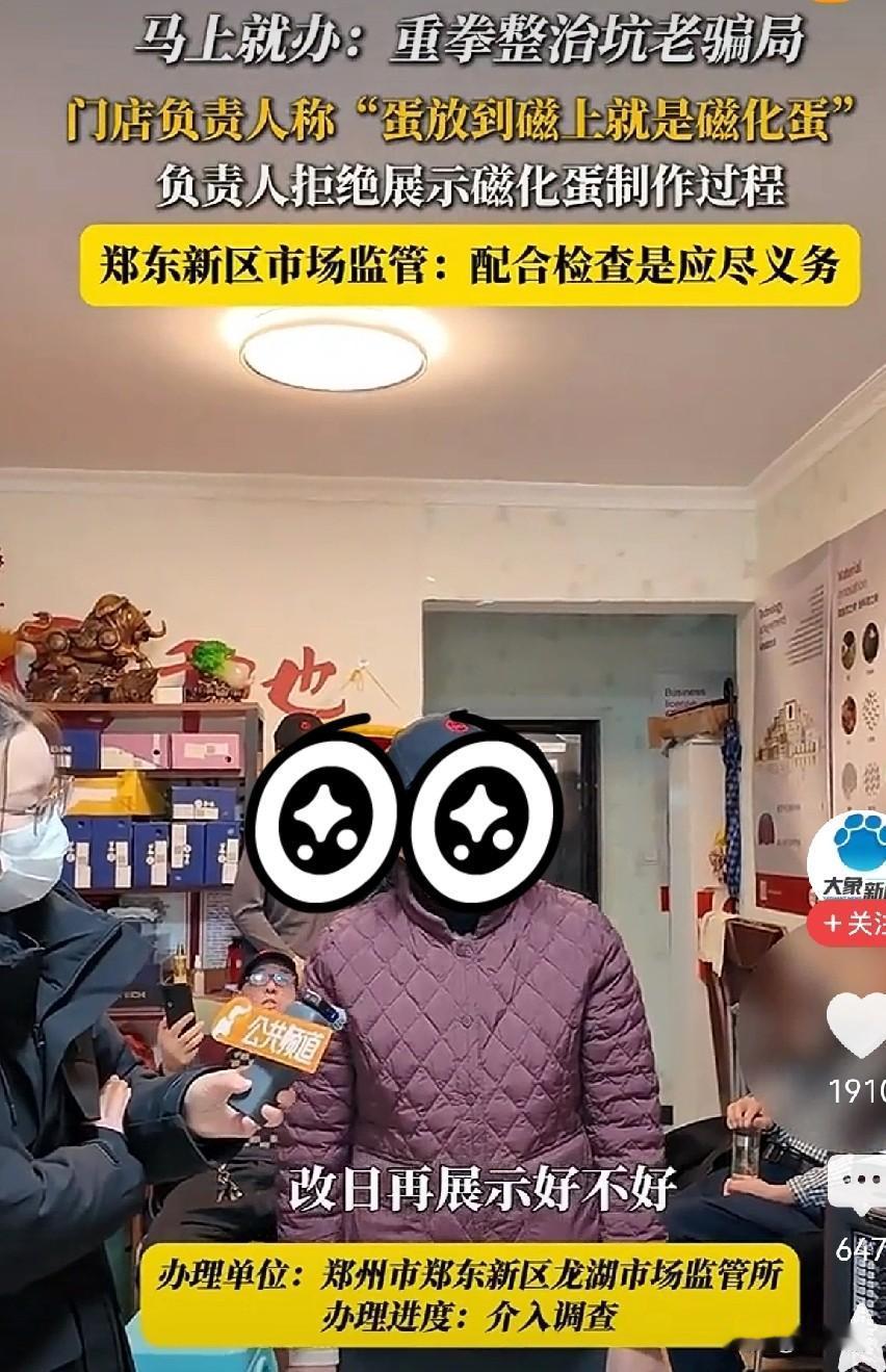 近日,郑州市郑东新区某健康体验店的负责人声称,把鸡蛋放到磁上就成了磁化蛋。老年人一听什么“磁化”,心想肯定吃了身体好,吃了肯定健康长寿。 但当市场监管人员要求老板展示磁化蛋的制作过程时,该负责人却屡屡拒绝,说我不想展示,你要看改天吧。这把工作人员气坏了,叫她摆正态度,配合调查的义务。 其实说白了,类似“磁化蛋”的概念早被用于养老诈骗。比如有公司曾发放免费领取“磁化鸡蛋”的宣传单吸引老人参与会销,进而推销虚假宣传的磁疗床、磁水杯等产品。借此夸大床垫的神奇功效,诱导老人高价购买产品。 从科学角度来看,简单将鸡蛋放在磁体上,不可能带来特殊营养价值或功效。商家宣扬“磁化蛋”,本质是利用老年人对健康的需求和对相关科学知识的欠缺,编造的营销谎言,目的是为后续推销高价无效的“磁疗产品”铺路。年关将至,老年人捂住自己的荷包,不要轻易被这些商家洗脑了啊。 (图片来自网络视频)