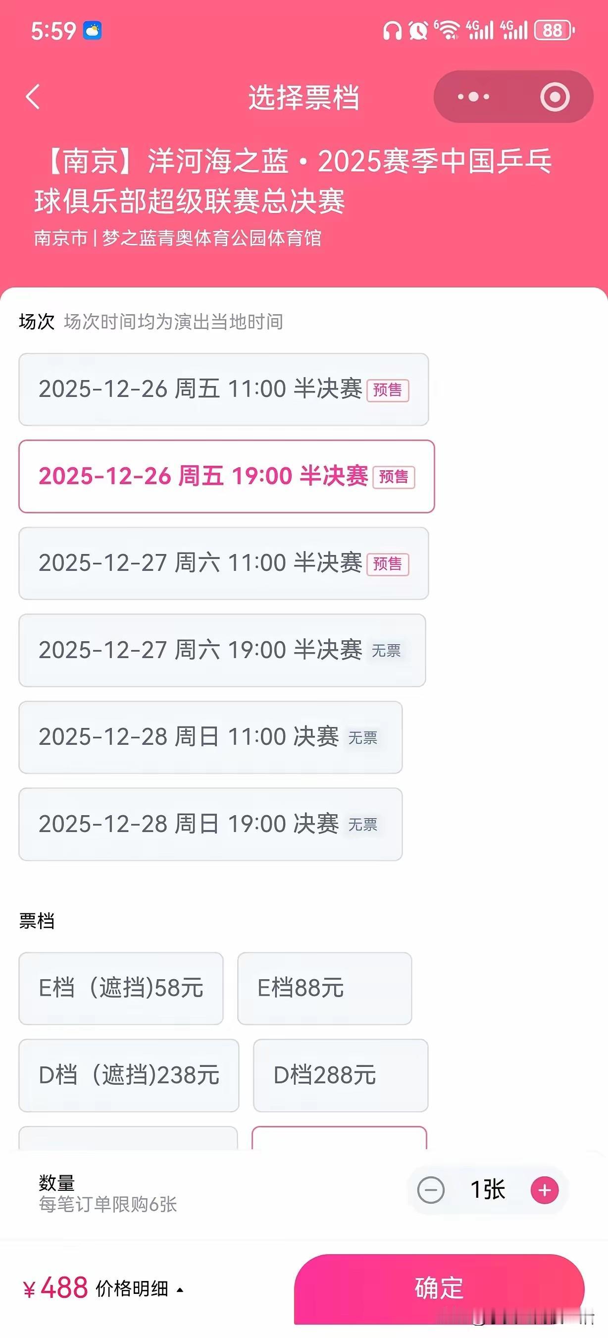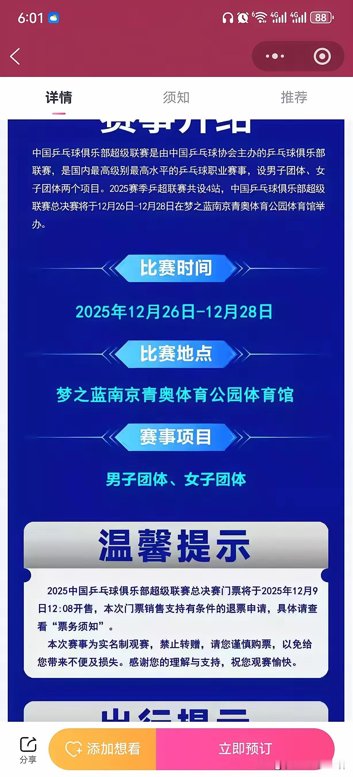 有票!最低票价58元。最高988元。德甲票秒空。WTT秒空。到咱自己的乒超总决赛了真球迷必须得给力点。抓紧去秒。都卖了10天了还有票,这说不过去吧!