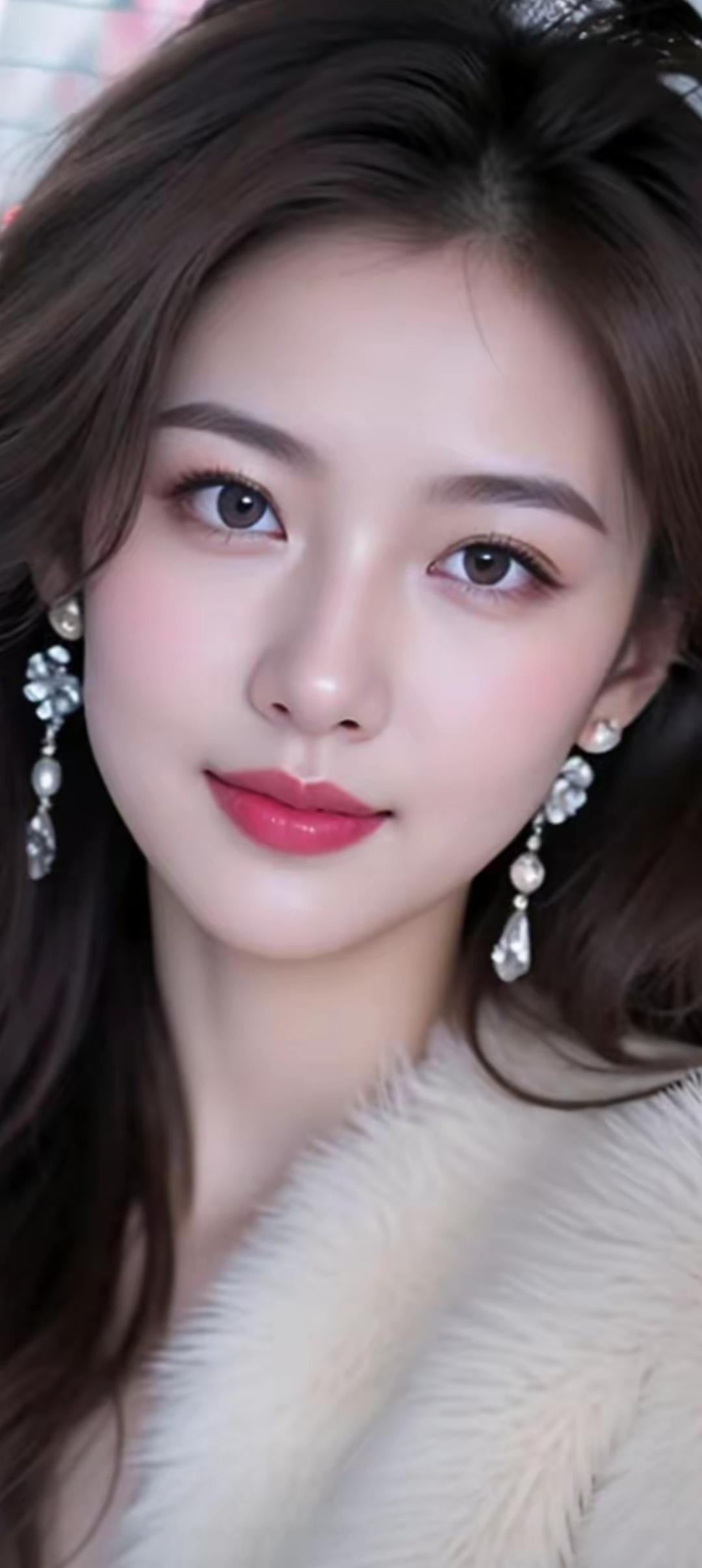 梦幻少女风,精致妆容,闪耀耳环,优雅白纱,红唇诱惑,完美无瑕。