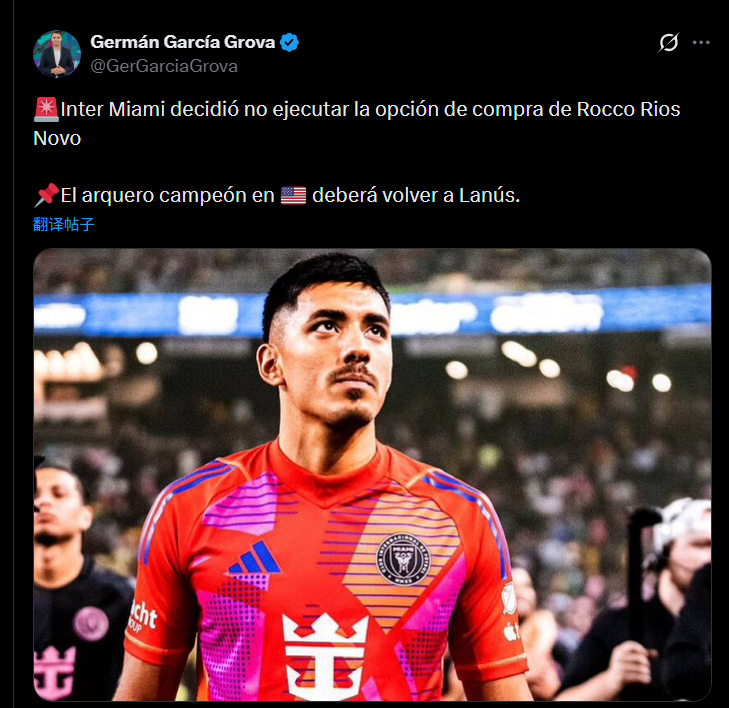 【转会动态】记者:门将里奥斯·诺沃将不会返回迈阿密,该球员将重返母队拉努斯竞技俱乐部。TNTSports:迈阿密国际正在就引进吉多·埃雷拉进行谈判。俱乐部已与这位33岁的门将达成个人条款,但塔列雷斯方面要求转会费超过200万美元。迈阿密国际迈阿密国际