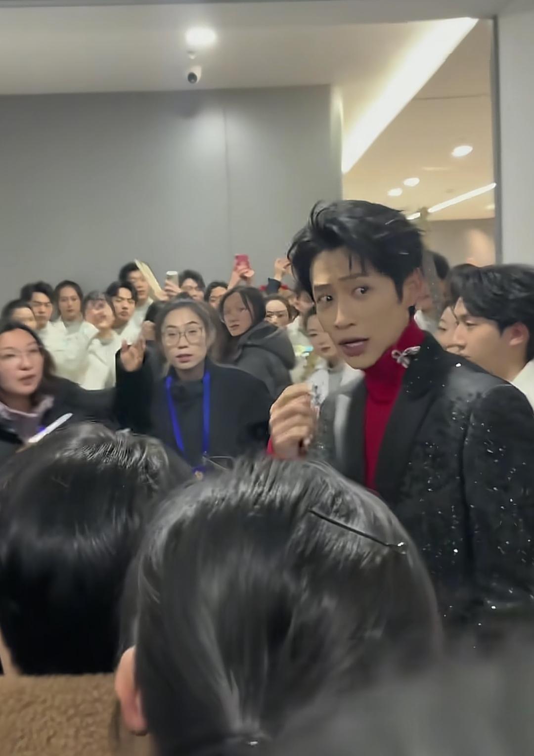12月16日,魏晨到到吕梁参加彩排活动了,魏晨的造型看起来很帅气,一群人围着他。 魏晨穿着红色高领毛衣,黑色演出服,头发打理的很帅气,魏晨在和大家积极沟通演出活动。 魏晨穿的很单薄,现场有点乱哄哄,可能大家见到魏晨比较激动。
