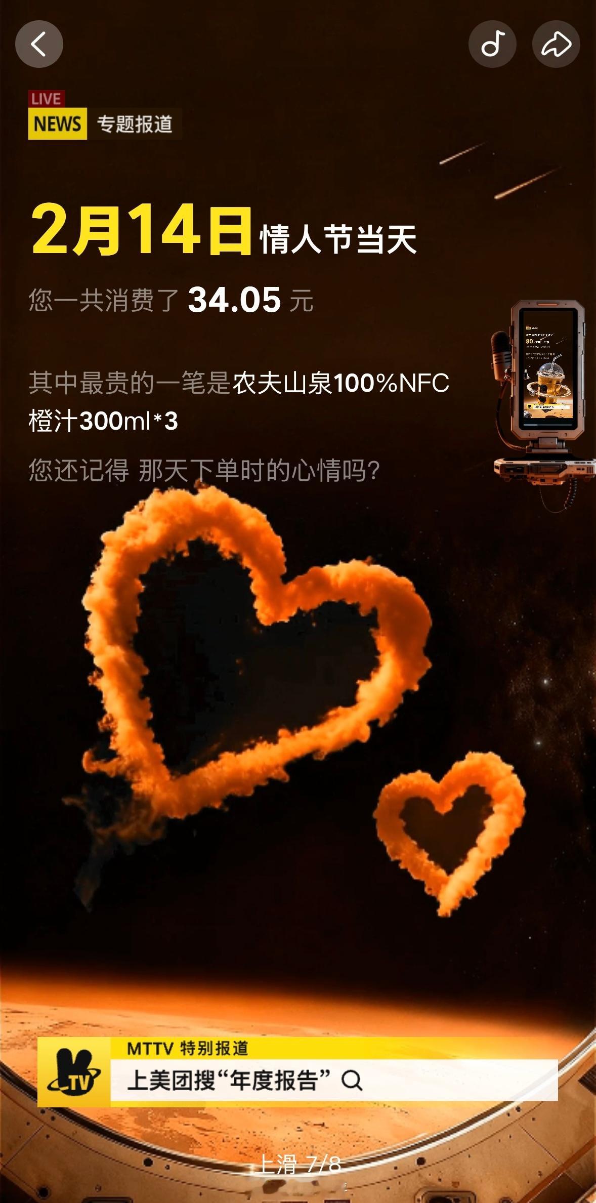 美团年度报告/年度账单也来了还专门给2月14日情人节列了一页大家今年在美团消费了