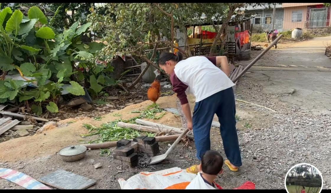 广西一帆妈妈是在丢广西人的脸吗? 广西一帆妈妈为什么要在猪圈对面地上烧火做菜? 还没有来得及盖一个温暖单独的厨房呢! 那如果下大暴雨怎么办呢?? 一帆妈妈和爸爸很随意地活着, 这份洒脱一直伴随着四个孩子的出生, 似乎为了省钱环境再差, 能吃饱饭就可以万事大吉了。 农村很少有人这样做柴火饭了, 用几块砖头就做了一个灶, 但火烧起来的确是挺旺的, 煎的鱼特别香, 小孩很喜欢欢吃! 一帆妈妈还是要搞个厨房做饭,不要给广西人看到了以为在抹黑广西农村人就不好了![赞]广西一帆妈妈家