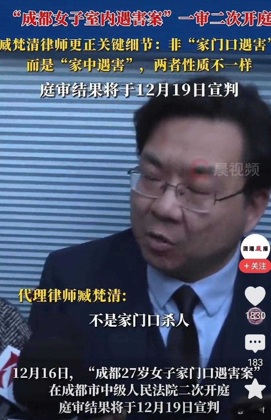 搞不懂!故意杀人案为啥审判这么难?成都女子屋内被害案二审开庭,细节再引关注 之前大家都以为这起案子是被害人在自家门口遇害,凶手是一名疑似精神病的女子,持刀伤人致其死亡。 但二审时律师明确更正,这其实是入室伤害!屋内留有血迹,屋外的脚印更是嫌疑人从屋里走出来时留下的被害人血印,怎么能简单定义成“屋外遇害”?要知道,入室作案的量刑标准本就更重! 受害者的母亲只有一个心愿:希望法律能严惩凶手。她只求法院能查明,嫌疑人行凶的那一刻是具备完全自主行为能力的,不是靠着所谓的“精神病”当护身符。该走的法律流程一步都不能少,绝不能让“精神病”变成某些人的免死金牌,继续危害他人! 要是仅凭一份精神病诊断书,就能无视他人的生命、逃脱应有的制裁,那岂不是给了不法分子可乘之机?这样的先例绝对不能开!受害者何其无辜啊! 大家觉得,精神病患者伤人之后,就一定能被判无罪吗?