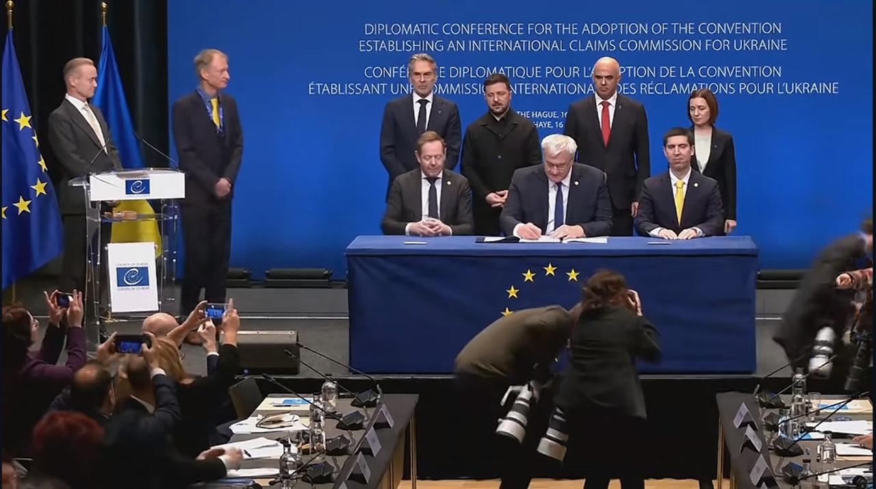 乌克兰战争索赔委员会成立,成员主要是欧洲国家。也就是欧洲要联合起来帮助乌克兰在战后向俄罗斯索赔,俄罗斯对给乌克兰造成的每一项损失,战争结束后都要对乌克兰进行赔偿,因为侵略罪行需要被清算。 首批在公约上签字的国家是荷兰和摩尔多瓦,首个国家当然是乌克兰了。签署仪式于17日在欧盟总部举行。此前,欧盟已对俄罗斯2100亿欧元的资产永久冻结。 这是乌克兰在柏林和会获得三重保障后的又一重大收获。
