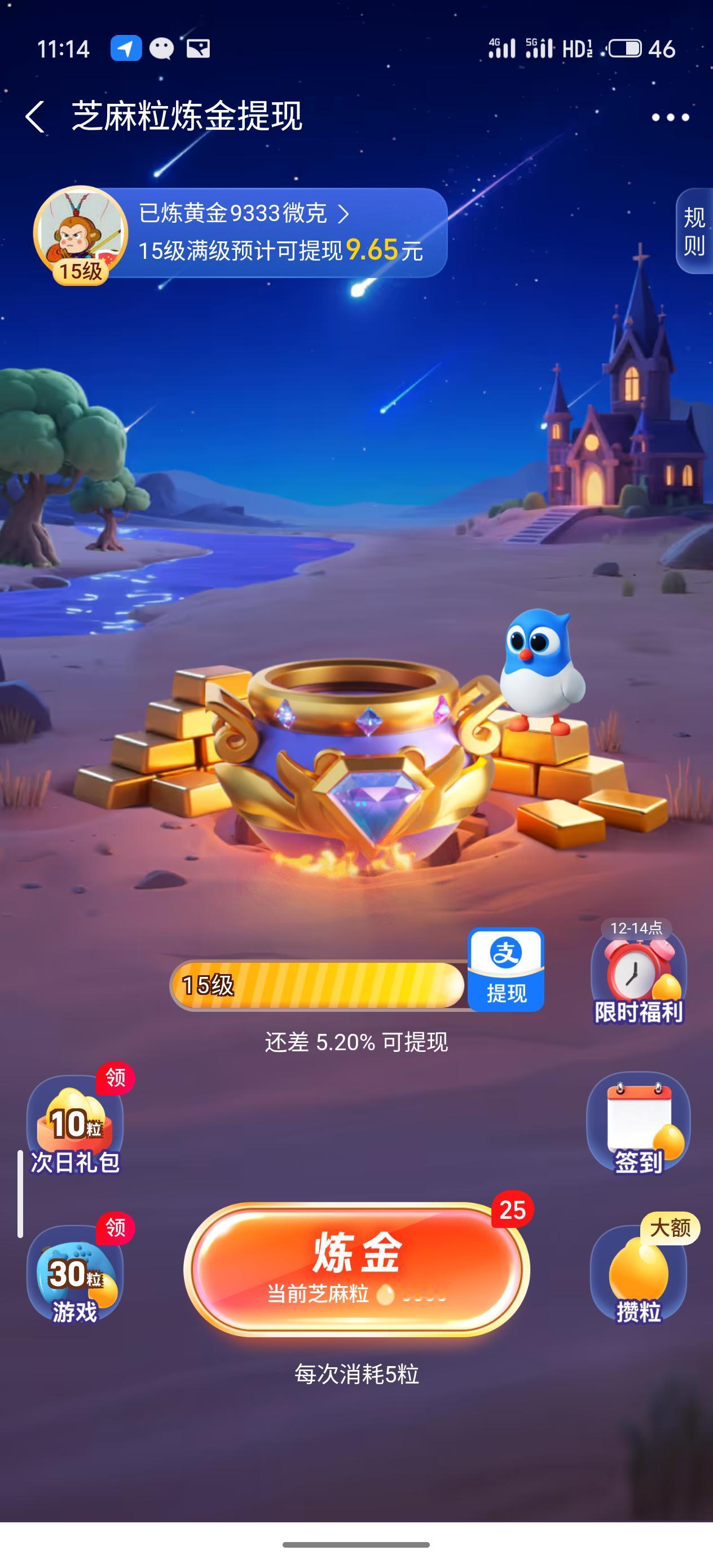 芝麻粒炼黄金 成功啦,🉐现金红包🧧9.65 上次炼成是上个月24日 这么算起