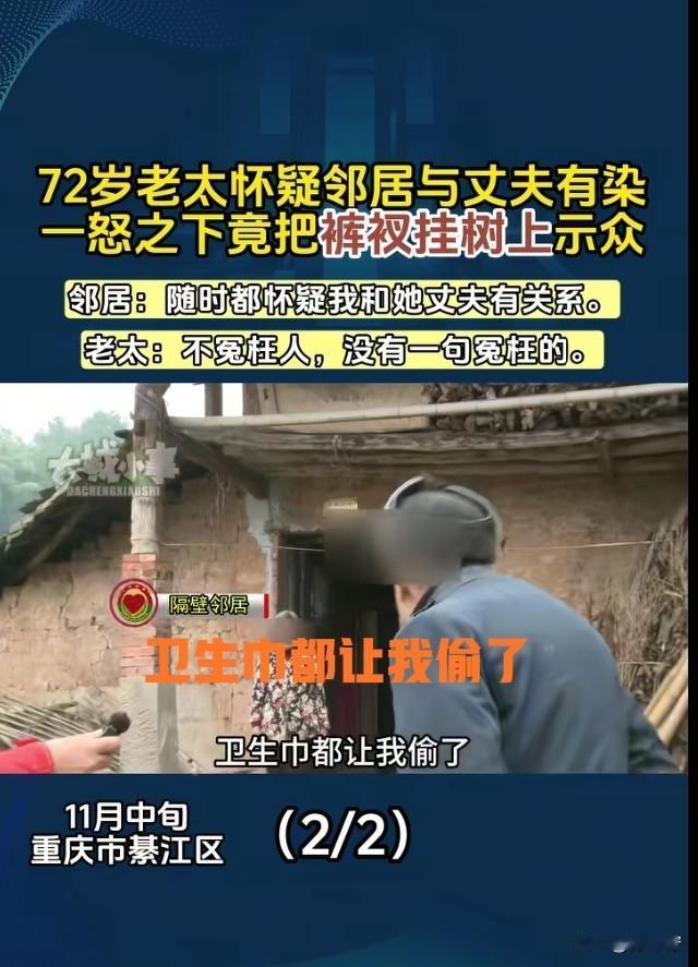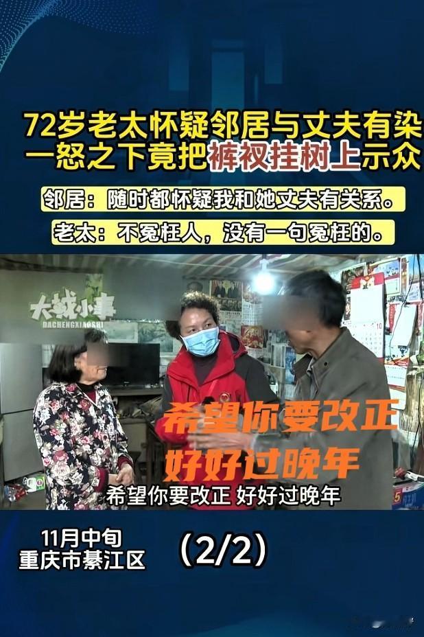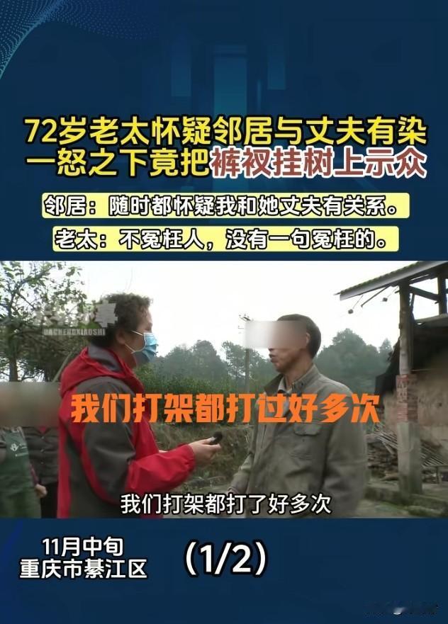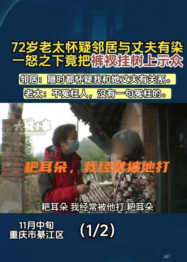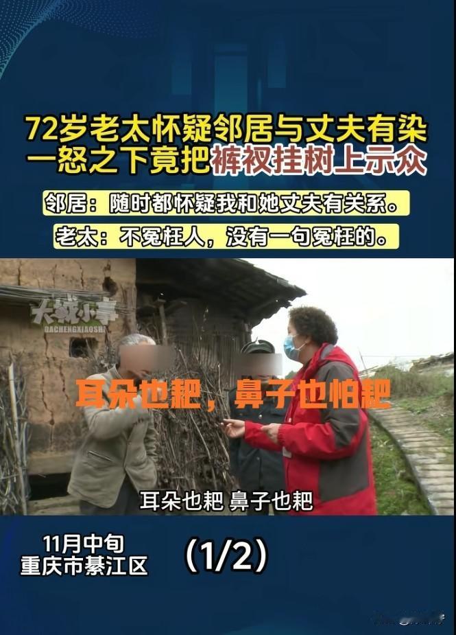 件件事情都离谱!重庆七旬老两口的生活,那是“鸡飞狗跳,乌烟瘴气”!72岁老太怀疑74岁老伴,在外面有“8个外遇”,一怒之下把老伴“裤衩子”挂在树上示众,宣示主权。 挨着老太住的两户邻居,就很倒霉催的被殃及到了。更炸裂的是,八十多岁的邻居大爷,被老太污蔑偷了她家卫生巾,大爷为了证明自己的清白,当场发起了毒誓。 和老太住一个院子的大娘,也是好不到哪里去,老太就怀疑大娘和老伴有一腿,觉得大娘是惦记老伴每月3500的养老金。老太还说:有一回大娘丈夫去赶集,自己又去和老姊妹聚会了,屋里就剩她两个,老伴就把家里的玉米,谷子,辣椒等全都搬到大娘屋里去了,老伴和自己又没得夫妻生活,自己老了,他就受不了,要去找。 邻居大娘听了老太的话,气的不行,只喊冤枉,称想死的心都有,后面大娘更是跑进屋子,抱出一堆“香纸”,跪着向天发誓自证清白。 更绝的是: 看热闹的“3号大爷”悠悠来一句,说老太的老伴是个没长骨头的“耙耳朵”,把养老金给老太,还要被他欺负,结果,大爷听着就跟着委屈摆烂,说自己就是“耙耳朵,耳朵也耙,鼻子也耙”,老太就反驳到:“你还耙耳朵,哪点耙吗?拿起东西就朝我身上打”。 没想到,大爷也是敢作敢当,当即承认了打过老太,大爷表示两个人经常打架,究其原因是:老太太过粘人,还爱怀疑,自己上个厕所,都要在外面守着,更是跟别人说句话,打个电话都要被老太怀疑出轨。 最终这场闹剧,在调解员的三寸不烂之舌下给调解开了,不管是哪方面都要讲证据,无端的怀疑,猜忌去说别人,就是对别人名誉上的损毁。老太表示自己不会再说了,大爷也说不再动手打她,关心她,希望她能改正,好好过晚年。 中老年人出轨 老年情感真相 老人出轨 重庆一老人 退休老人婚外情 老年人乱象 老年人婚姻现状