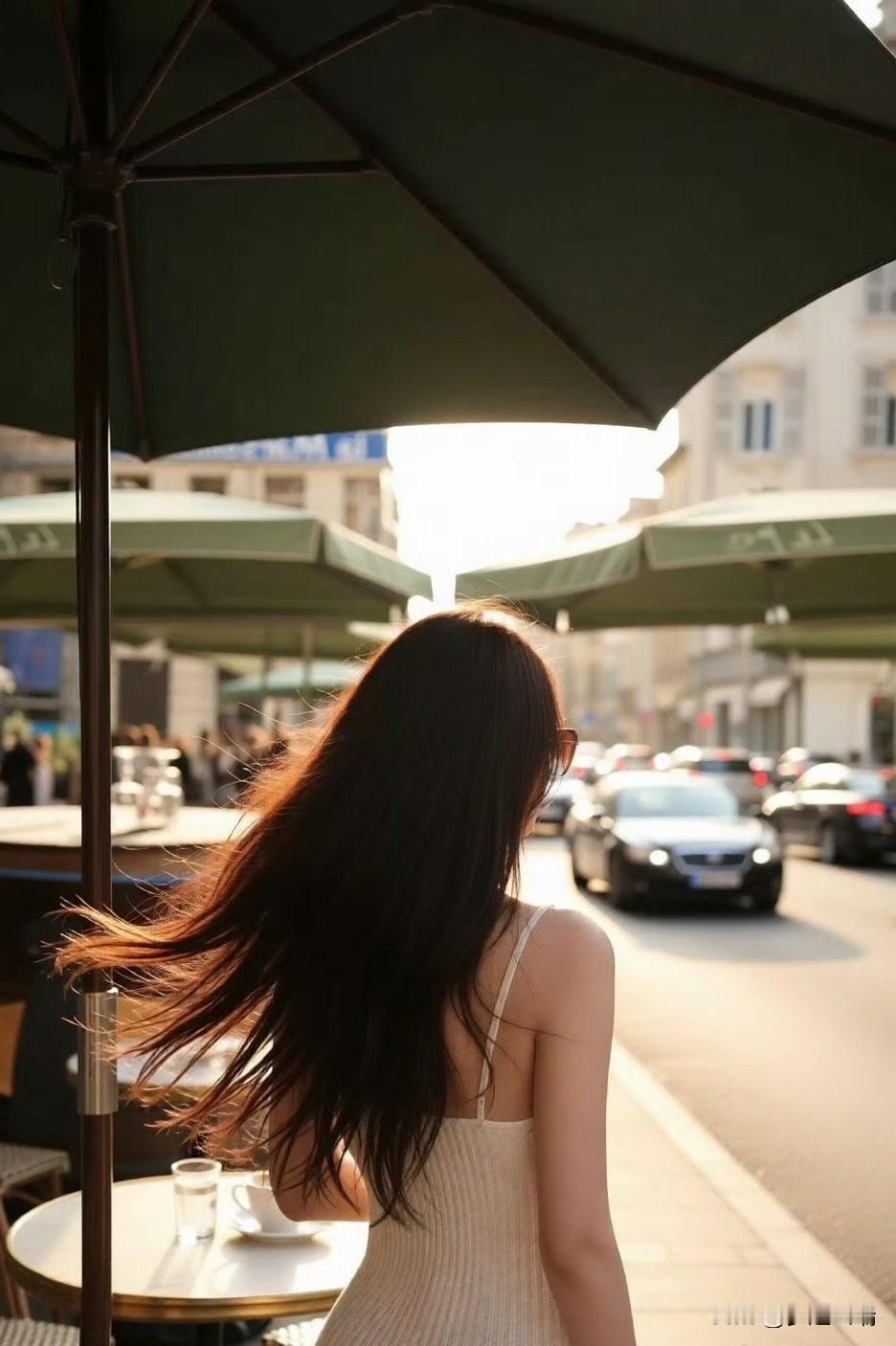 雨中漫步,撑伞漫步在咖啡馆外的浪漫时光。