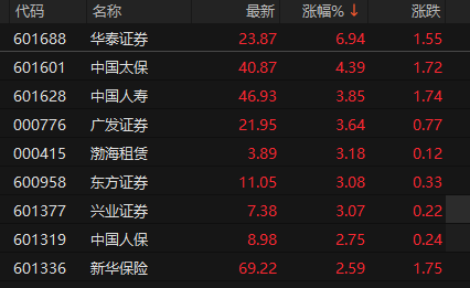 非银金融板块午后拉升 华泰证券涨近7%