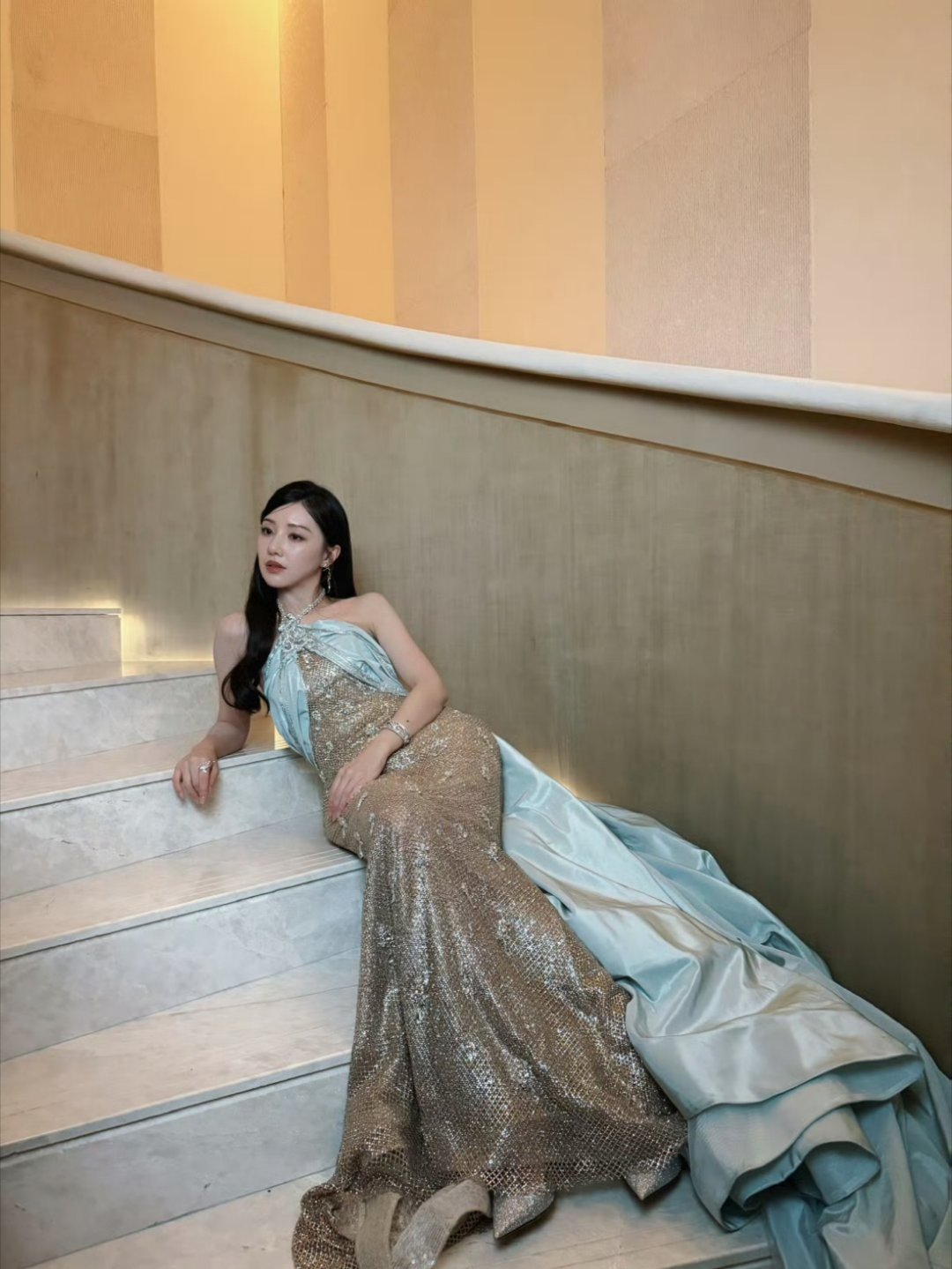 狠狠心动王鹤润!王鹤润有种没吃过苦的美薄荷绿金色碎钻鱼尾裙惊艳出圈,贵气感十足