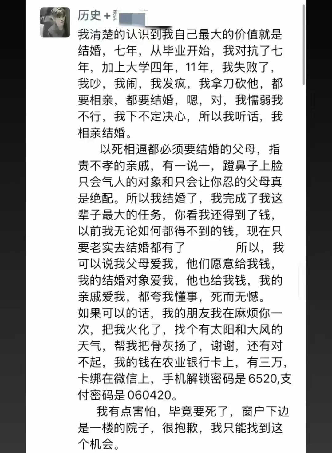 有编制,干嘛选择轻生啊! 有编制就意味着有稳定的经济来源,日常生活和养老不用担心,一辈子无忧啊,有什么比有保障的生活更重要呢? 有编制也是抗争的底气,谁也不靠,就能生活得很好,为什么不能坚定做自己呢? 河南跳楼新娘年仅28岁,编制教师,对学生也很好,即使因为班级成绩不理想也不会迁怒自己的学生。 聪明,漂亮,口碑也不错,富于同情心,却因为不想结婚走上绝路。 结婚和不结婚都是自己的事,父母可以提倡,但决定权都在自己,能决定自己生死,为什么不能决定自己好好生活呢?