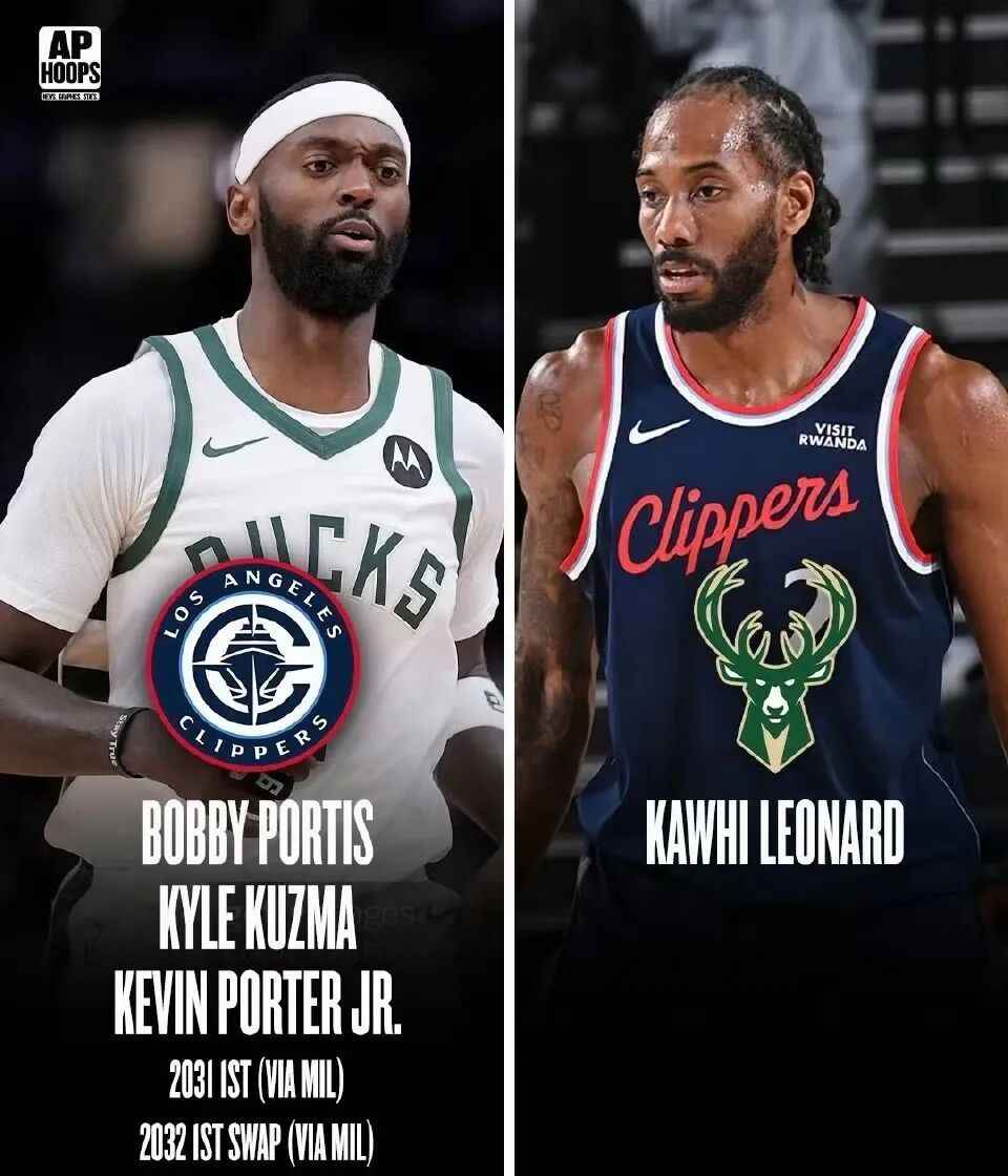 美媒模拟了一笔快船与雄鹿的交易方案:雄鹿方送出:鲍比-波蒂斯、凯尔库兹马、小凯文-波特、2031年首轮签、2032首轮互换。快船方送出:科怀-伦纳德