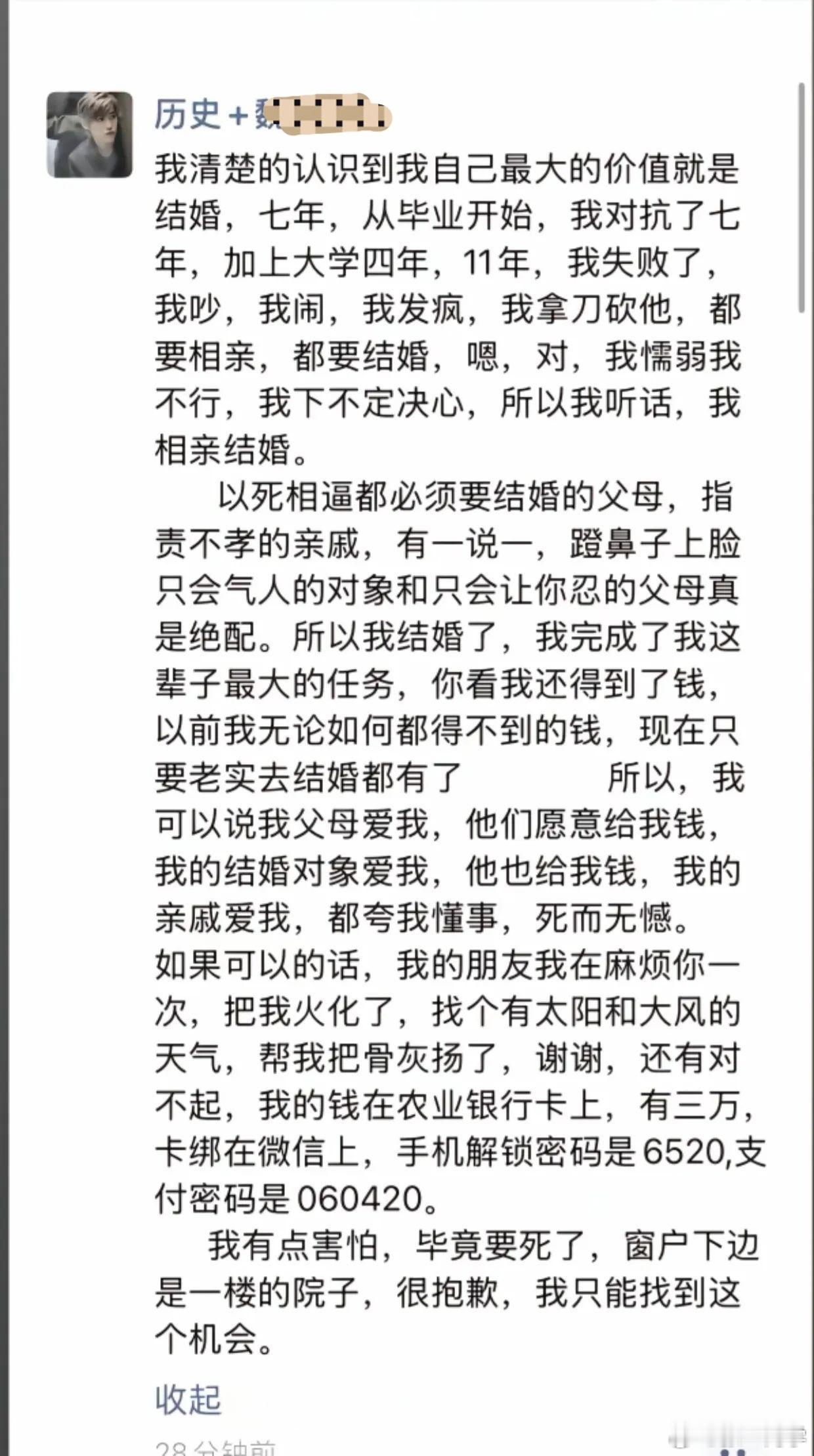 28岁女教师结婚当天跳楼身亡,其遗体在坠楼当日双方都不愿认领。女方家人认为:已经嫁出去了,应由新郎负责……回头再看其朋友圈遗言,窒息感扑面而来。她的父母真的爱她吗?女教师新婚坠亡一楼业主要求赔偿