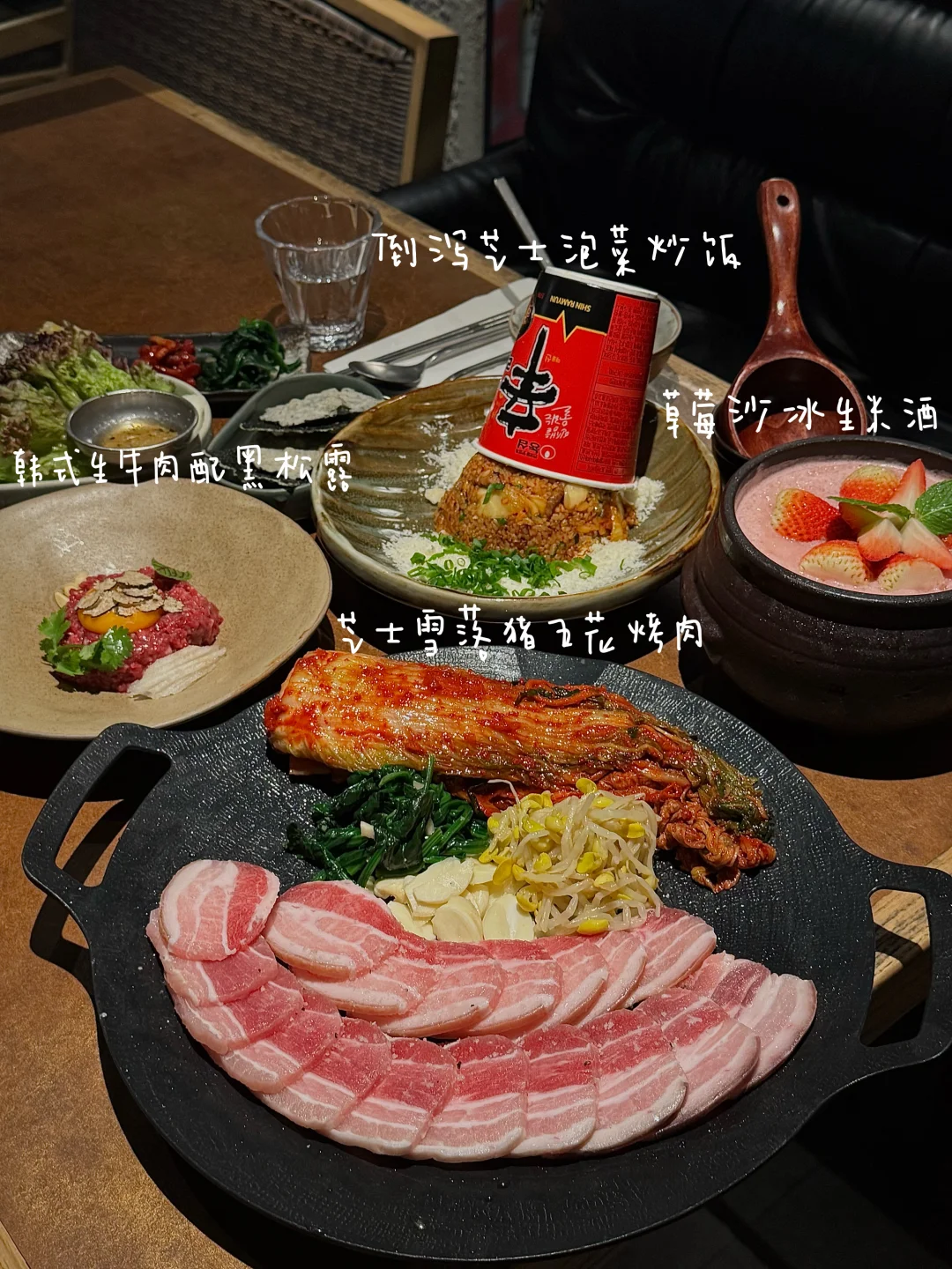 🥩Gyojasang:晚餐来吃这家很火的韩式居酒屋 点了新出的圣诞套餐 推荐芝士雪落猪五花烤肉 店员还会帮忙烤 很香好吃!(🚇铜锣湾站)