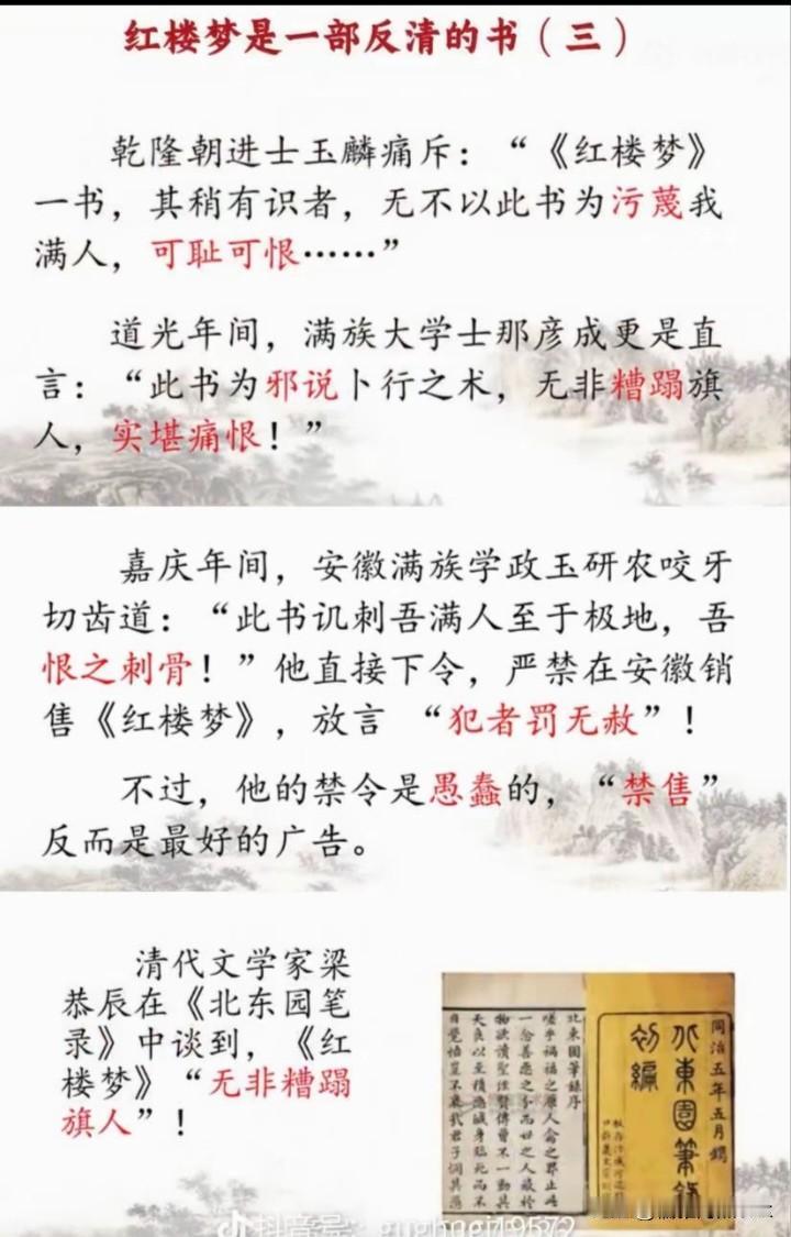 禁令是愚蠢的,禁售是最好的广告。清朝一直知道《红楼梦》是一部反清书,一路封杀,然