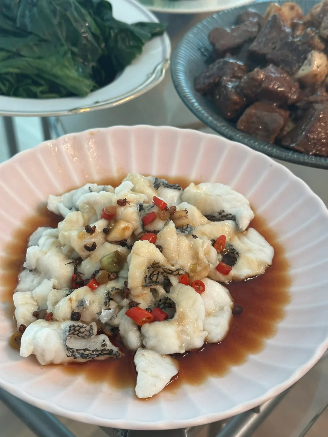 🐟花椒葱油黑鲈鱼片(料汁搜“青花椒卤浸鲈鱼”)