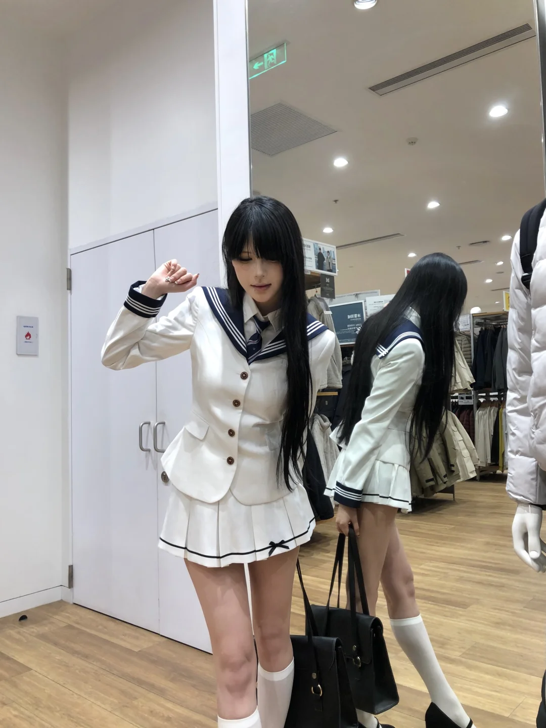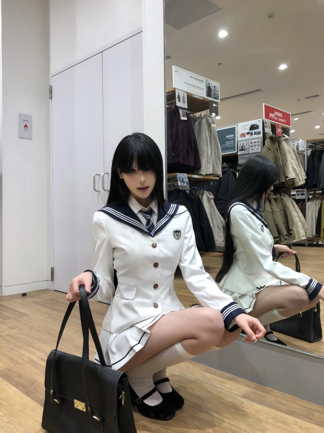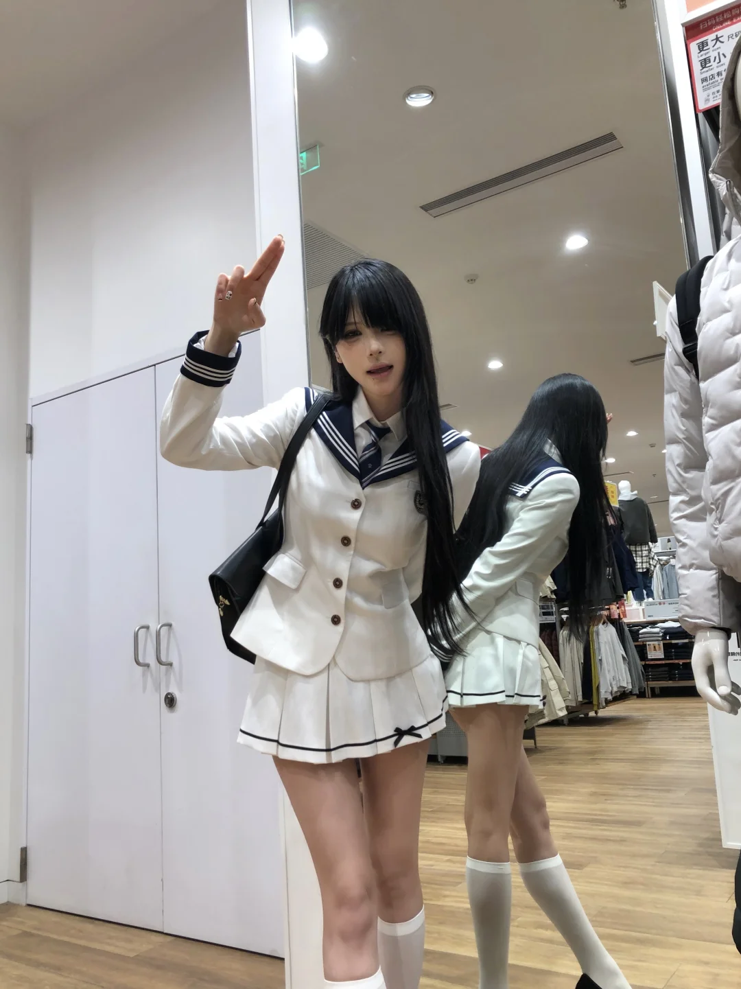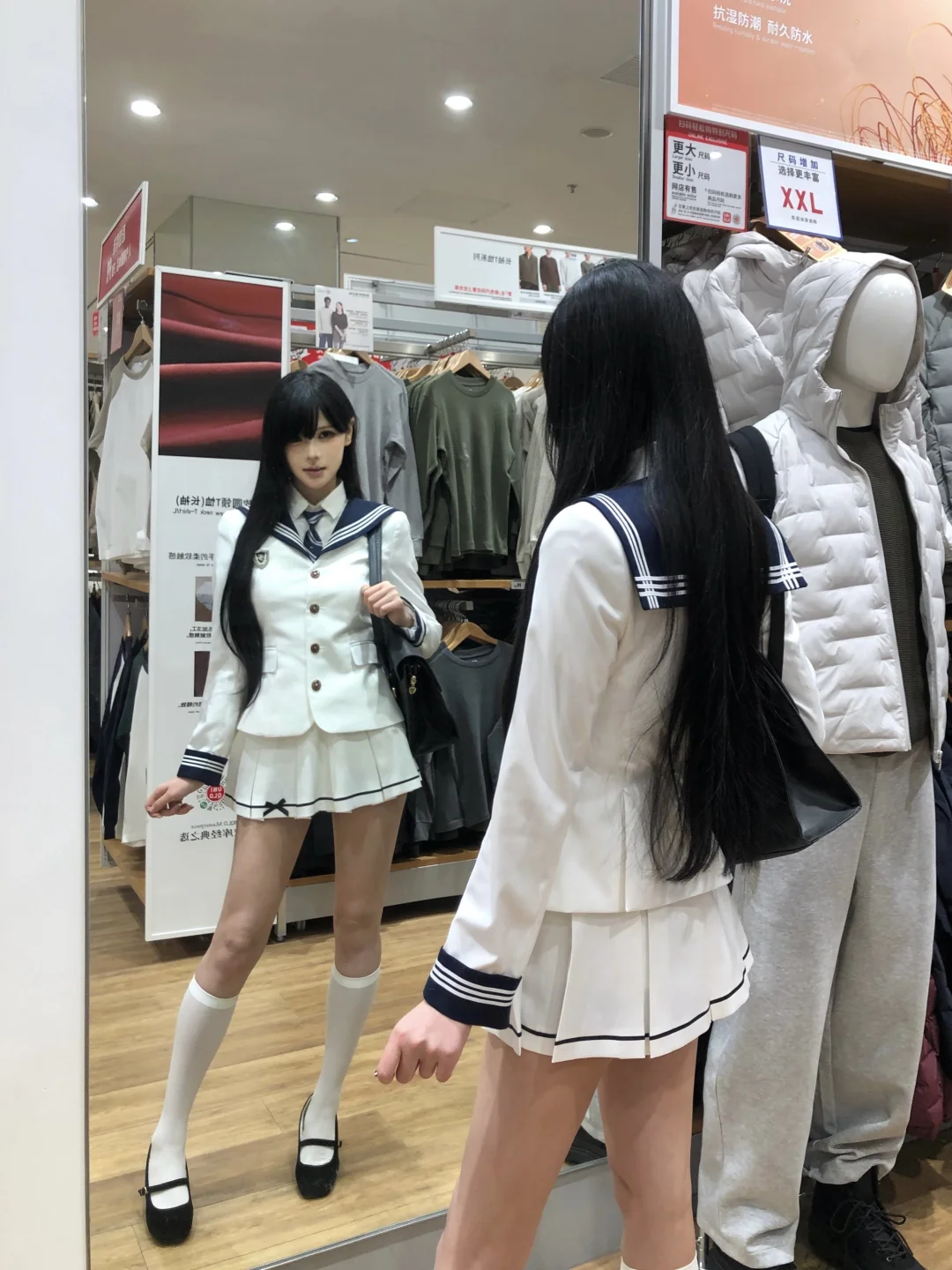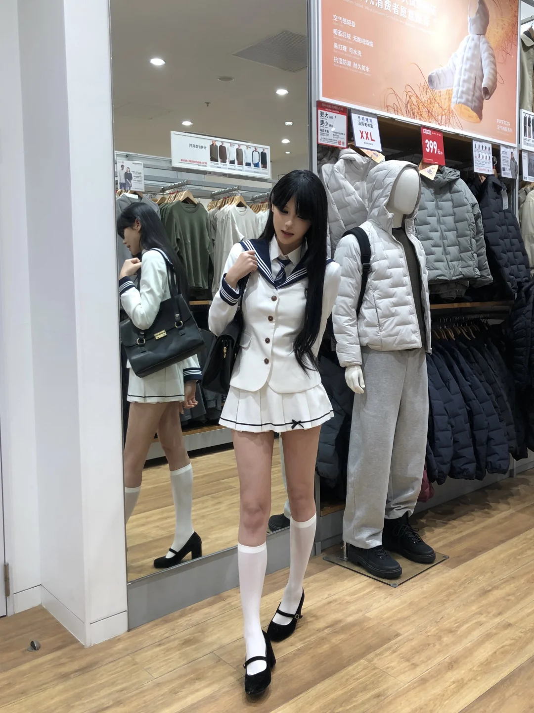 最后想到一个妙招 穿过膝袜 折一半塞在鞋里就可以变成小腿袜了[扯脸H]
