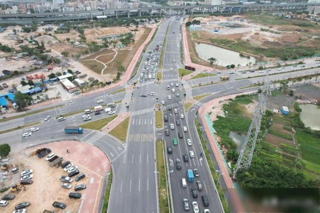 坦洲大道全长8.5公里,采用双向10车道高标准设计。通讯员供图