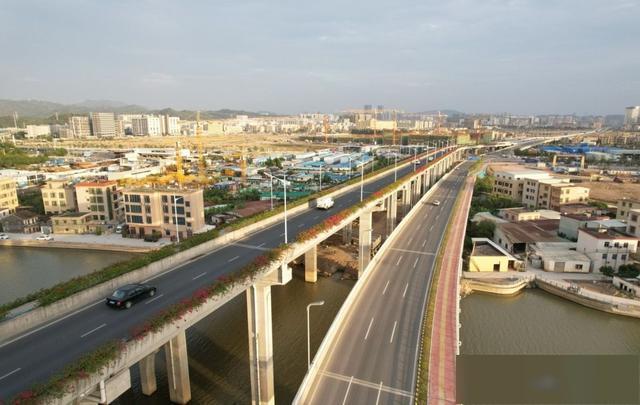 坦洲大道全长8.5公里,采用双向10车道高标准设计,全线共设桥梁19座、下穿隧道2座、箱涵1座,桥隧比高达40.53%。项目包括新建段4.4公里与改扩建段4.1公里。新建段穿越中山坦洲经济开发区、中山高端显示产业园;扩建段则贯穿坦洲镇核心商圈,是连接中山与珠海的重要通勤走廊。